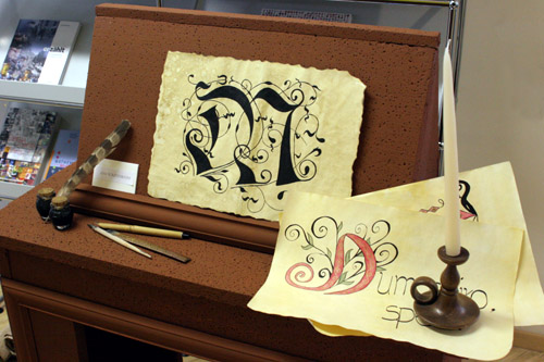Im Rahmen des klassenübergreifenden Projekts „Wissen und Sprache im Mittelalter“, koordiniert von Prof. Markus Rinner, hat die Klasse 4G im Kunstunterricht mit Prof Claudia Tiso typische Objekte des Mittelalters nachgebildet.