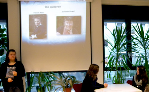 Die Klänge eines Streicherquintetts ertönten kürzlich in der Eingangshalle der Schule. Damit empfing die Klasse 1L des Kunstgymnasiums die Klasse 1C des Sprachengymnasiums und geleitete sie in die Aula, wo die Gäste von Sofia mit einem Klavierstück begrüßt wurden. Im Rahmen des kleinen Lesefestes erfolgten anschließend mehrere kreative Buchpräsentationen. Mit musikalischen Klängen und der Übergabe des Korbes voller Bücher endete das Treffen.