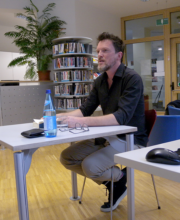 Der Autor Andreas Jungwirth hat die Autorenlesung sehr interessant und neu gestaltet. Er hat uns nicht nur einen Einblick in sein Buch „Schwebezustand“, sondern auch in sein Leben und wie er ein Buch schreibt gegeben.