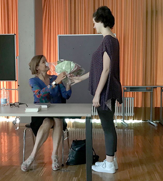 Nach der zweistündigen Lesung mit Fragerunde diskutierten wir in unseren Klassen noch weiter über die faschistische Regierung in Rom und die Charakterstärke der Protagonistin Emma. Ihre Traumata nach dem Verlust ihres Freundes durch den Anschlag in der Via Rasella in Rom und die Beschreibung dieser Flashbacks durch die Autorin haben in uns die Spannung auf den Rest des Buches geweckt. Auch die Lektüre von „Daldossi oder Das Leben des Augenblicks“ steht nach der Lesung nun bei einigen von uns auf dem Plan – nach der Abschlussprüfung!