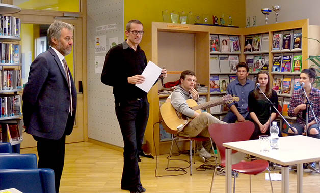 Einen Höhepunkt bildete die Veranstaltung in der Schulbibliothek Verdistraße. Der Meraner Bürgermeister Paul Rösch hat die Einladung der Bibliothek gerne angenommen und den Schülerinnen und Schülern der 3A und der 3C des Sozialwissenschaftlichen Gymnasiums einen Einblick in seine Lesebiographie gegeben. „Bücher helfen, dem Leben auf den Grund zu gehen“, so die Worte des ersten Bürgers, der humorvoll und kurzweilig die Zuhörerschaft mit vielen Buchtipps fesselte. Über Bücher, die seine zahlreichen Reisen begleiteten, finde er einen Zugang zu anderen Völkern und Ländern, über Geschichten einen Zugang zur Geschichte. Neben bekannten literarischen Werken von Autoren wie Hermann Hesse, Thomas Mann, Paulo Coelho, Marlen Haushofer, Stefan Zweig u. a. lässt er sich auch von spirituellen Büchern inspirieren. Nach seinem Lieblingsbuch befragt, unterstreicht er, dass er viele Lieblingsbücher habe, diese gerne auch immer wieder in die Hand nehme und mit einer anderen Wahrnehmung lese.