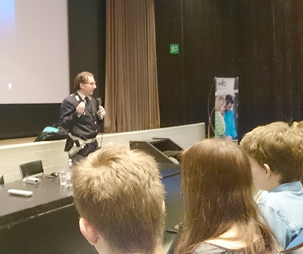Herr Campisi sprach über die Tätigkeiten der Postpolizei: z.B. die Bekämpfung der Online-Kinderpornographie, des Cybermobbings und die Überwachung von sozialen Netzwerken. „Anonymität im Netz gibt es nicht“, so Campisi. Anhand von mehreren krassen Beispielen verdeutlichte er diese Aussage. Er zeigte uns auch mehrere Videoclips, die uns zum Lachen, aber auch zum Nachdenken anregten. Uns wurde bewusst, dass in sozialen Netzwerken niemand eine Privatsphäre hat und auch unser Image auf dem Spiel stehen kann.