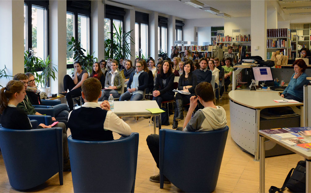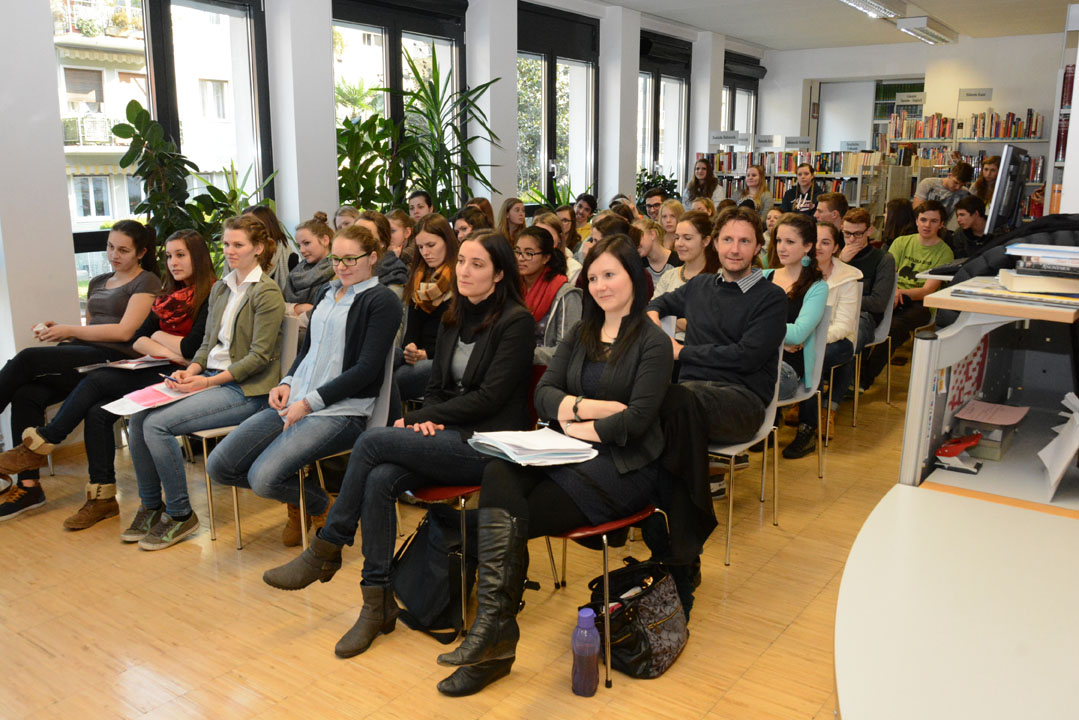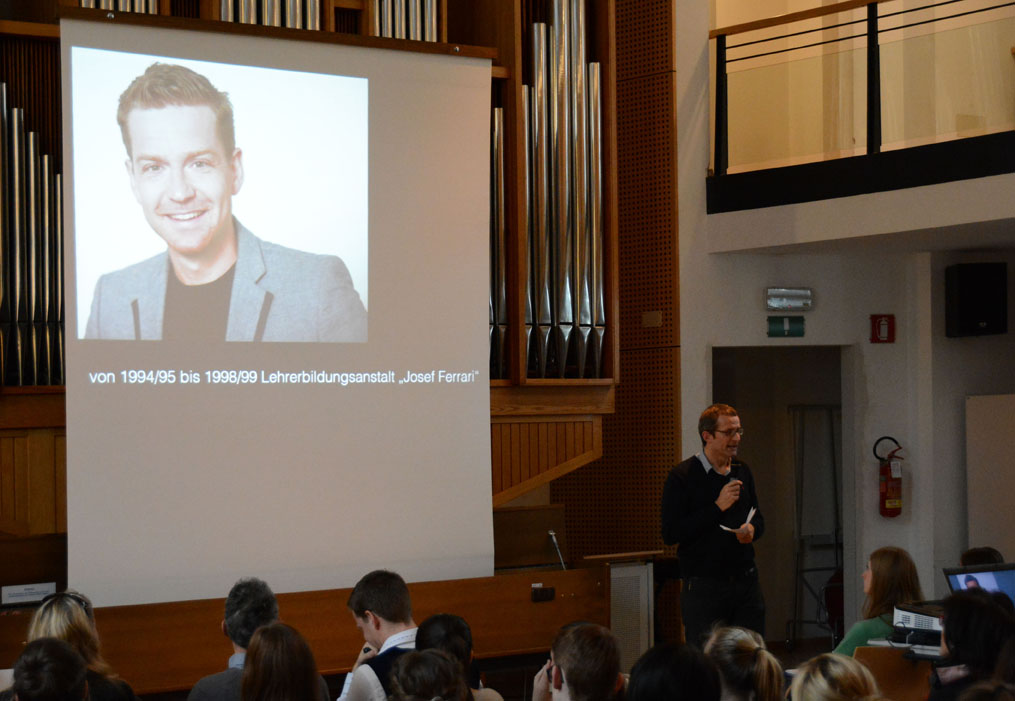 Edith Haller, die international bekannte Wagnerinterpretin und Armin Pircher-Verdorfer, der an der TU München lehrt und forscht, waren der Einladung der Bibliothek Verdistr. gefolgt. Diese hatte für Schüler und Schülerinnen der 5. Klassen eine Matinee mit dem Titel „Lebens(ver)läufe“ organisiert, in der Abgänger dieser Schule Einblick in ihr Curriculum Vitae geben.