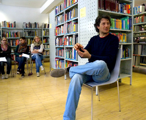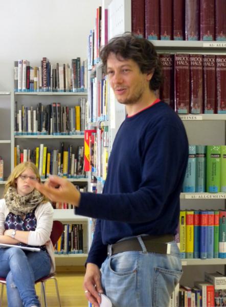 In occasione dell’ampio progetto „Pietre d’inciampo – Stolpersteine“ la biblioteca scolastica ha allestito una mostra di libri sulla Shoah ed ha invitato Mirko Wenter, vicepresident della Comunitá Ebraica, per l’inaugurazione.