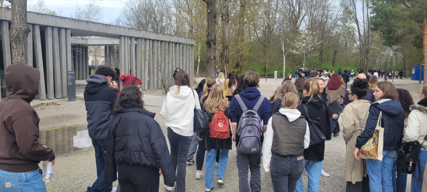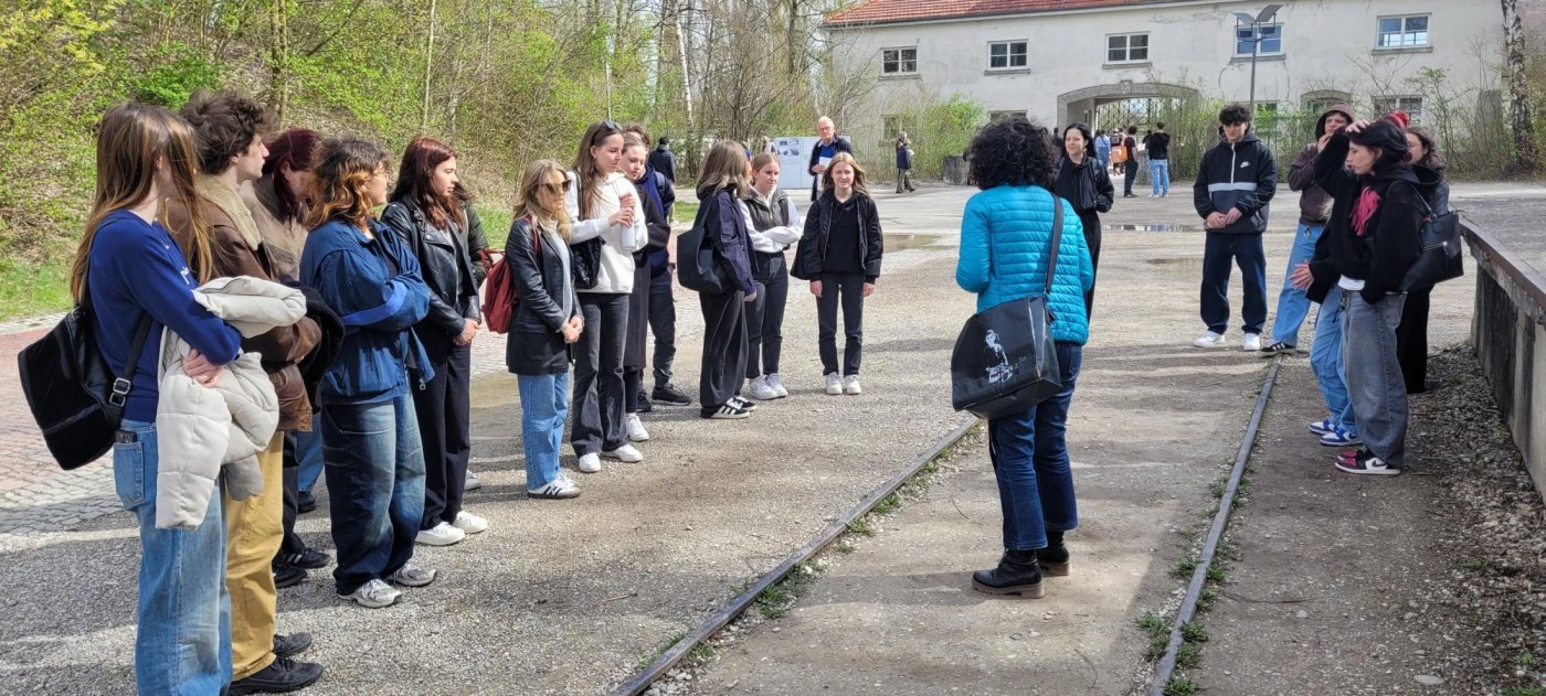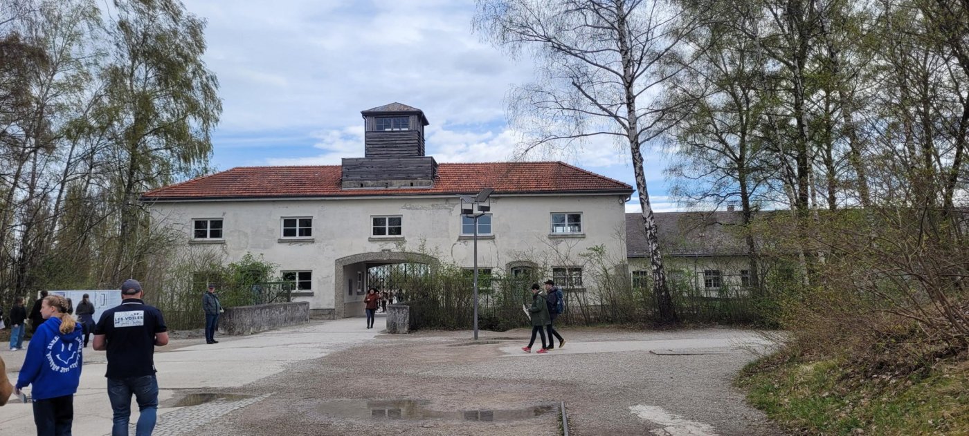 Am 4. April 2024 trafen wir, die Klasse 5K/ku, uns mit den Klassen 5D/ku und 5I/sob um 5.45 Uhr am Praderplatz in Meran. Dort stiegen wir alle in einen Reisebus und unsere fünfstündige Reise begann. Um 11 Uhr kamen wir in Dachau an und gingen ein paar Schritte vom Parkplatz zum Eingang der Gedenkstätte, wo wir unsere Betreuerin trafen; jede Klasse erhielt eine separate Führung durch das Gelände. Unsere Referentin erklärte uns kurz ein paar Regeln und dann begann unsere zweieinhalbstündige Führung. Zuerst zeigte sie uns, wo die Häftlinge ankamen, sie erklärte uns anhand einer Karte das Gelände des Konzentrationslagers und welche Gebäude heute noch erhalten sind.
