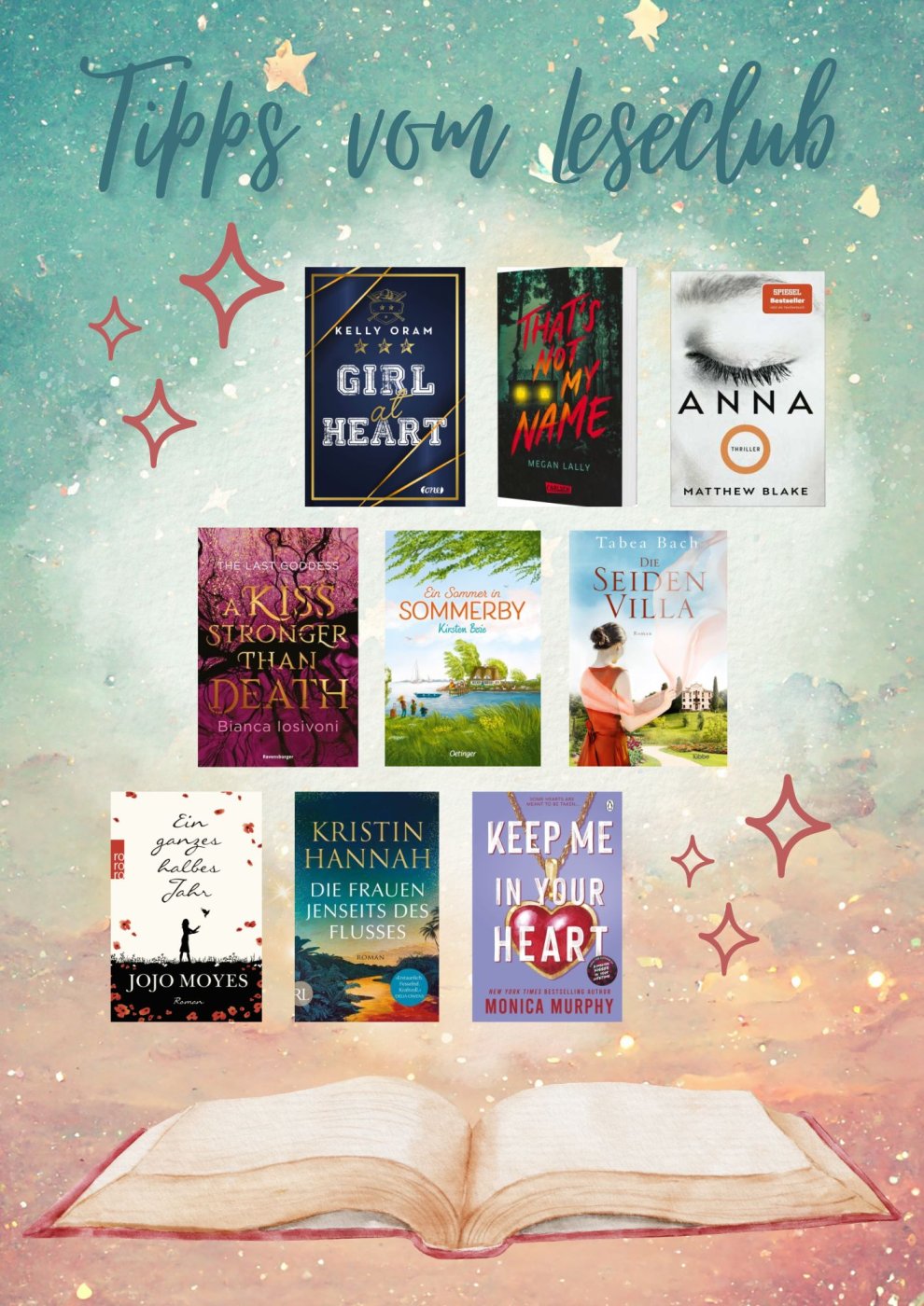 Bei einem geselligen Beisammensein mit frisch gemachtem Popcorn aus unserer neu angekauften Popcorn-Maschine haben sich die Mitglieder des Leseclubs wieder bunt gemischte Lektüretipps ausgetauscht, die sie gerne an die Schulgemeinschaft weitergeben: