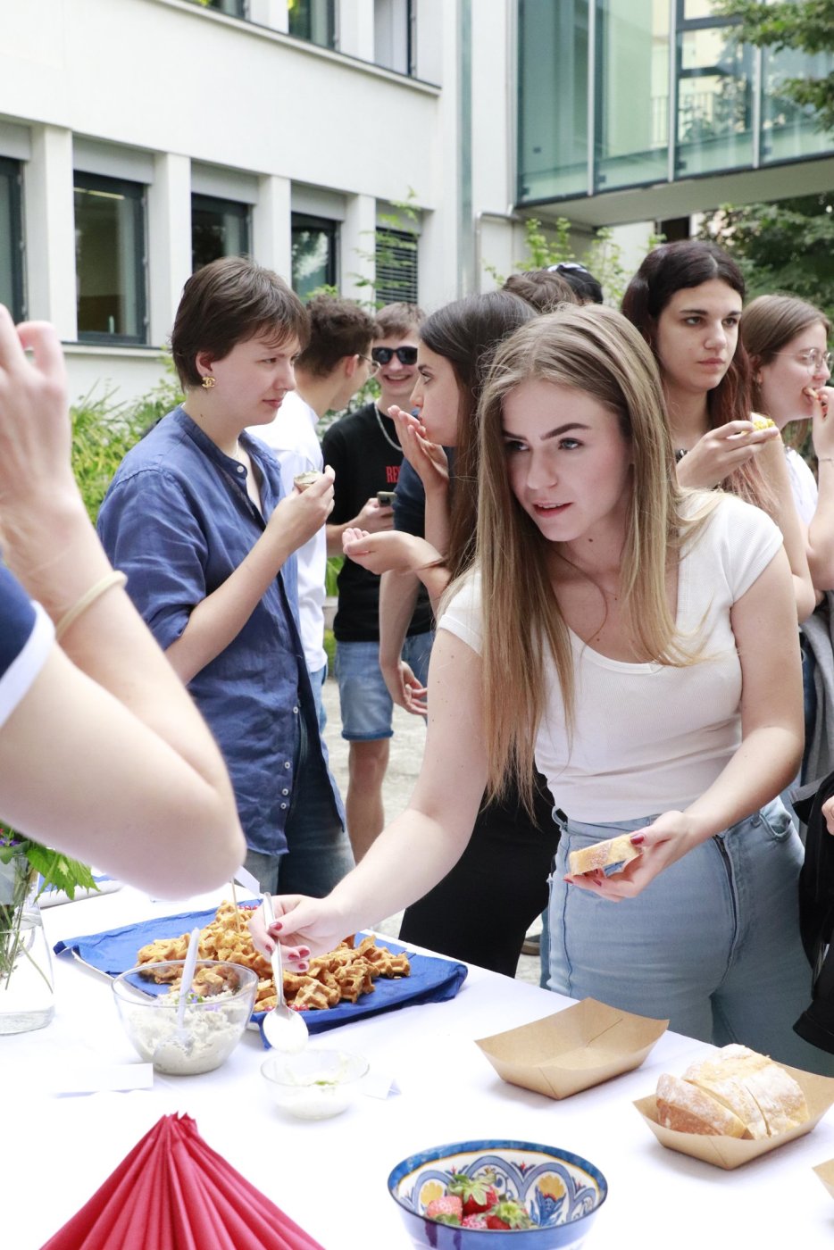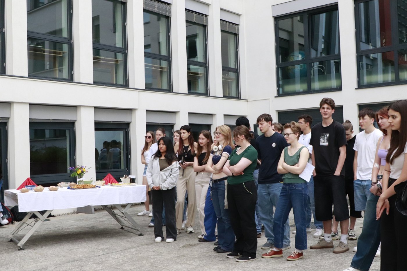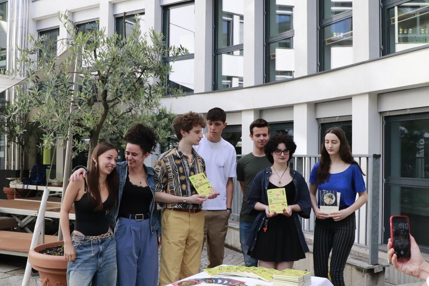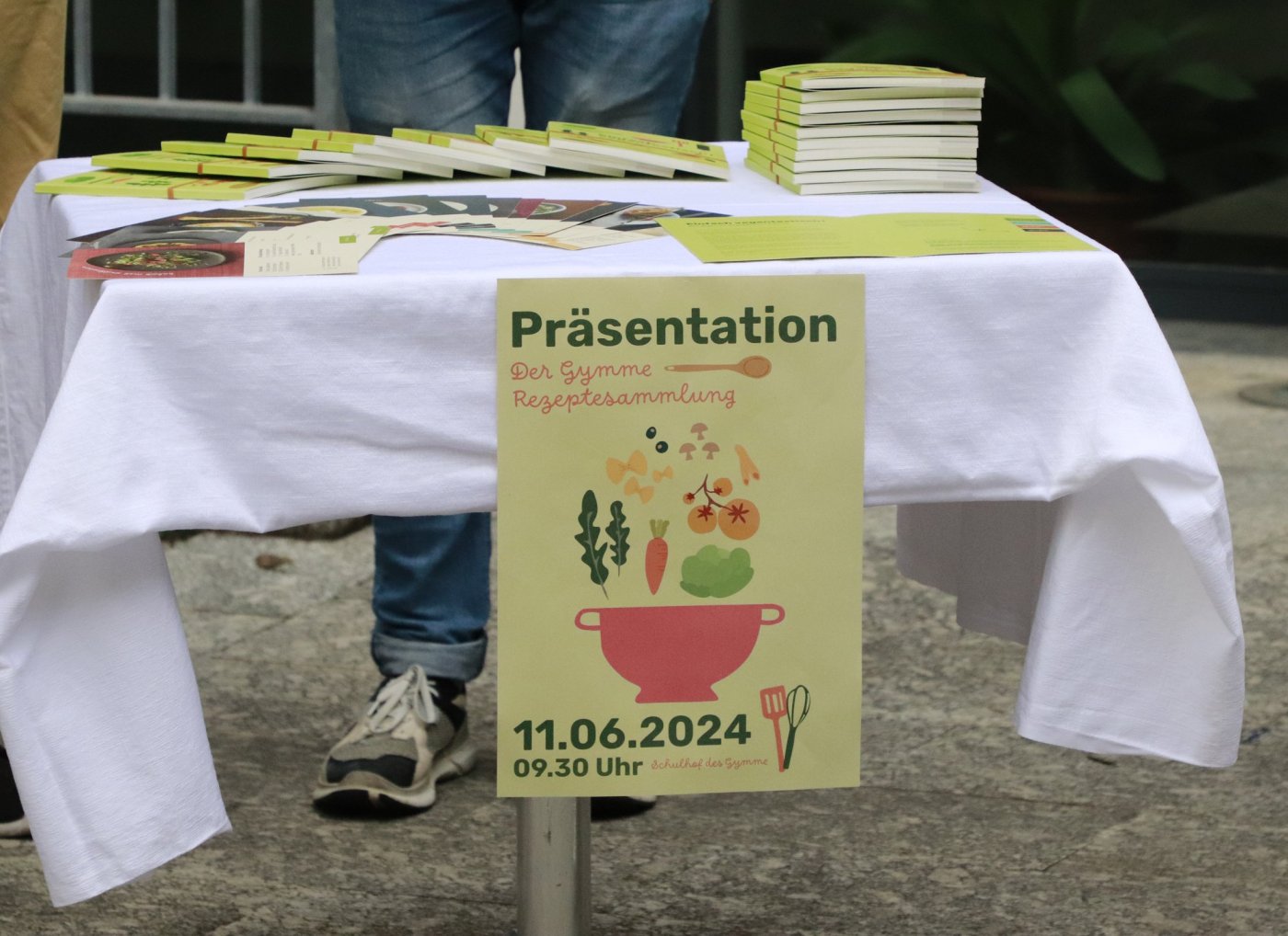 Um das zu ändern haben wir über ein ganzes Schuljahr lang Rezepte gesammelt, fotografiert und getextet, was das Zeug hielt. Das Ergebnis durften wir am 11. Juni im Schulhof des Gymme vor mehreren Klassen präsentieren. Nach einer Vorstellung des veganen Kochbuches gab es dann ein reichhaltiges, vollkommen veganes Büffet.