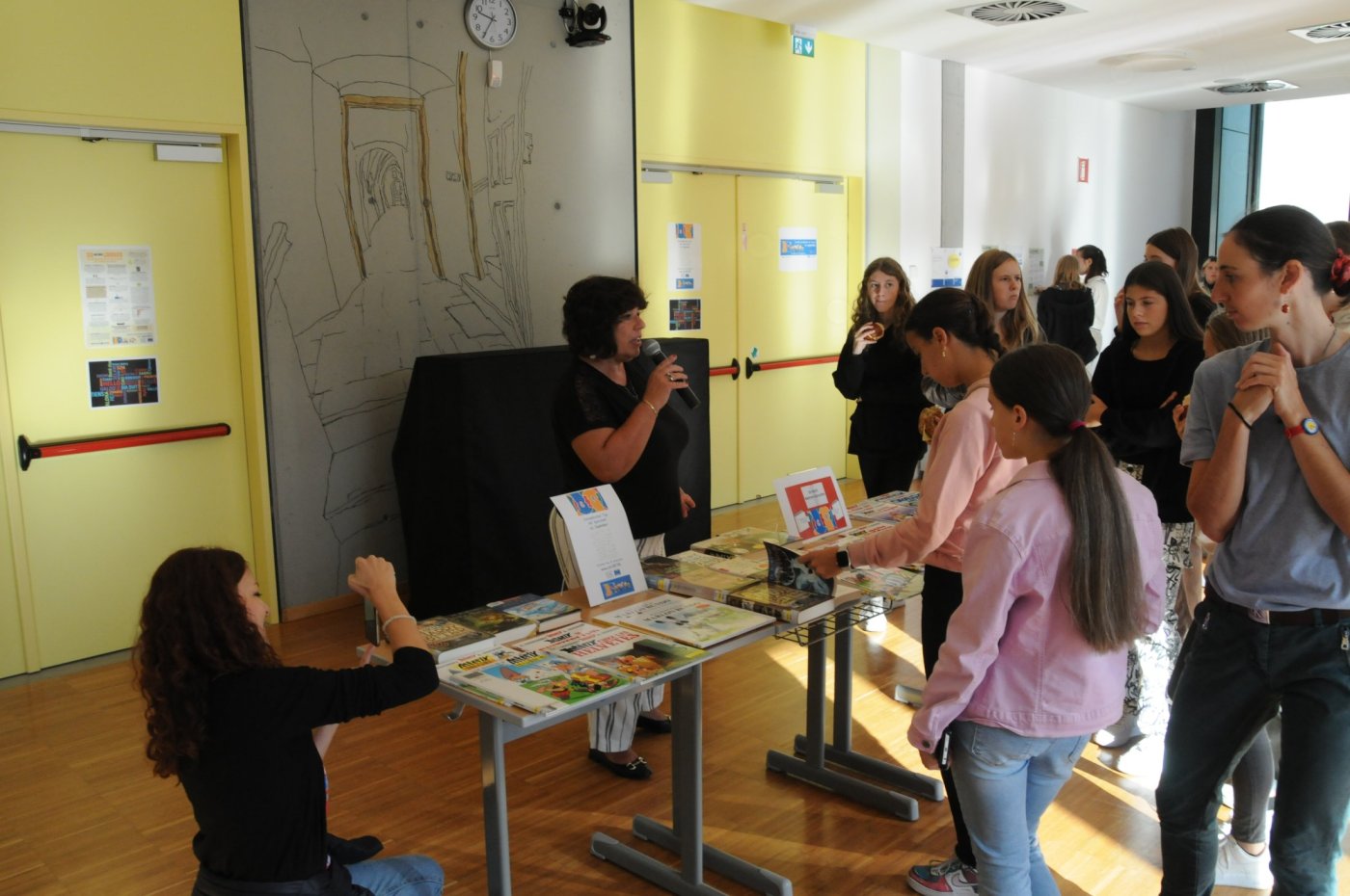 Die Schulstellenleiterin Prof. Kiem hieß die Schüler*innen an unserer Schule Willkommen und stellte den Mehrwert des Sprachenlernens in den Vordergrund.