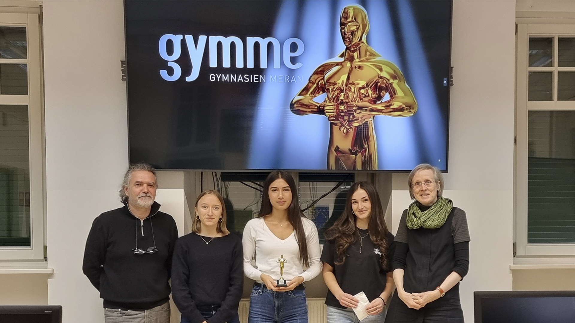 Zum Thema Ich_Meiner_Mir_Mich erstellten die Schüler*innen einen Film von mindestens 30 Sekunden bis max. zwei Minuten, in dem sie sich selber präsentierten. Am Ende des Projekts gab es eine Siegerehrung mit dem Gymme-Oscar 2026