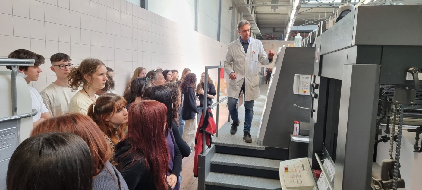 Am Mittwoch, den 05. April 2023 fuhr die Klasse 3K/ku mit den Lehrpersonen Pinzger Ruth und Fischnaller Stephan nach Bozen um die Druckerei Longo zu besichtigen. Zuerst bekam die Klasse eine kurze Einführung mit Informationen über die Firma und generell über den Druck. Danach wurden uns aktuelle Aufträge und einige Beispiele des Packaging gezeigt, welche die Firma Longo produziert hat. Anschließend folgte eine Führung durch die Druckerei, mit Erläuterungen über die Belichtung der Aluplatten und die Offsetmaschine. Begleitet wurden wir dabei von Maya Lüfter, dem Head of Marketing der Firma Longo und einem Mitarbeiter des Offsetdrucks. Für uns war es ein interessanter Ausflug.