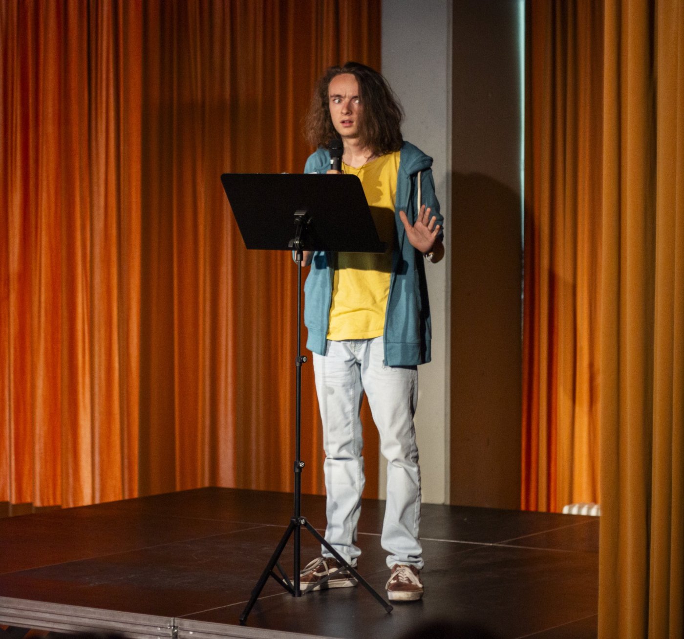Bei der Vorbereitung unterstützte der Schauspieler und Sprecher Günther Götsch die Schüler*innen mit individuellem Sprechtraining. Im gebührt ein großer Dank für seinen professionellen Einsatz.