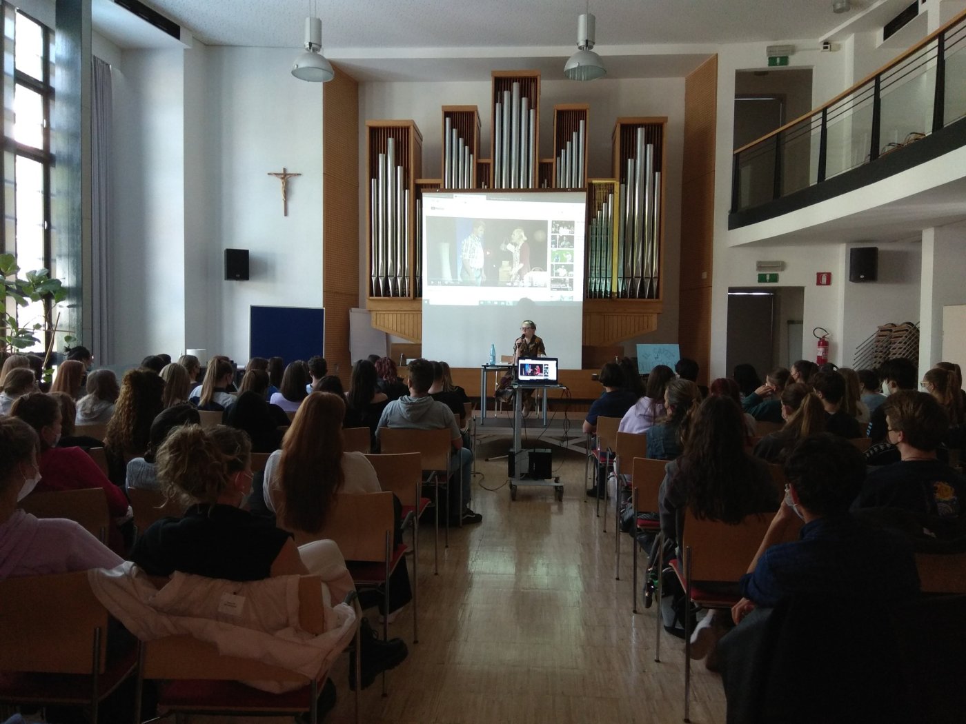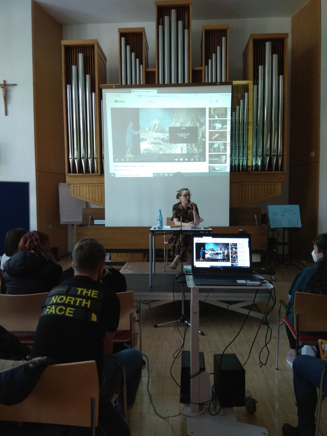 Am 29. April fand in der Aula Magna unserer Schule eine Lesung mit Selma Mahlknecht statt. Gewohnt wortgewandt präsentierte die Autorin und Regisseurin, die im Übrigen auch den heurigen Musischen Abend inszeniert hat, einige ihrer Theaterstücke und ihr neuestes Buch „Berg and Breakfast“, in dem sie die Licht- und Schattenseiten des Tourismus beleuchtet.