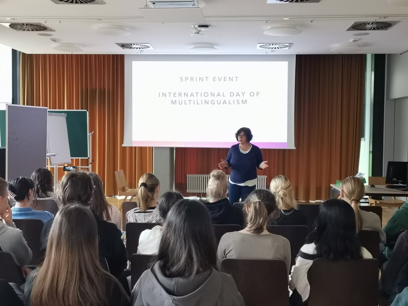 Our library team, Petra Weiss and Prof. Petra Fliri, together with Prof. Pellegrini had organized a variety of multilingual games and activities. The aim was to celebrate multilingualism having fun with languages. Students played, for instance, Activity in different languages, or sang karaoke songs in all curricular languages but also in Urdu and Albanian. Some creative multilingual products such as multilingual roleplays of fairy tales or translations into South Tyrolean dialect of some Asterix scenes, were presented at the end of the event.