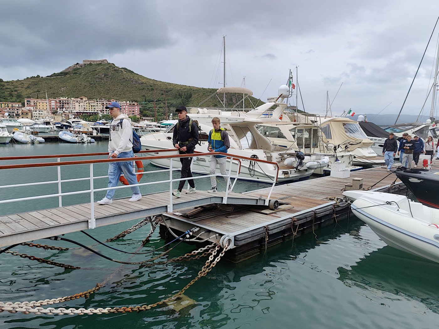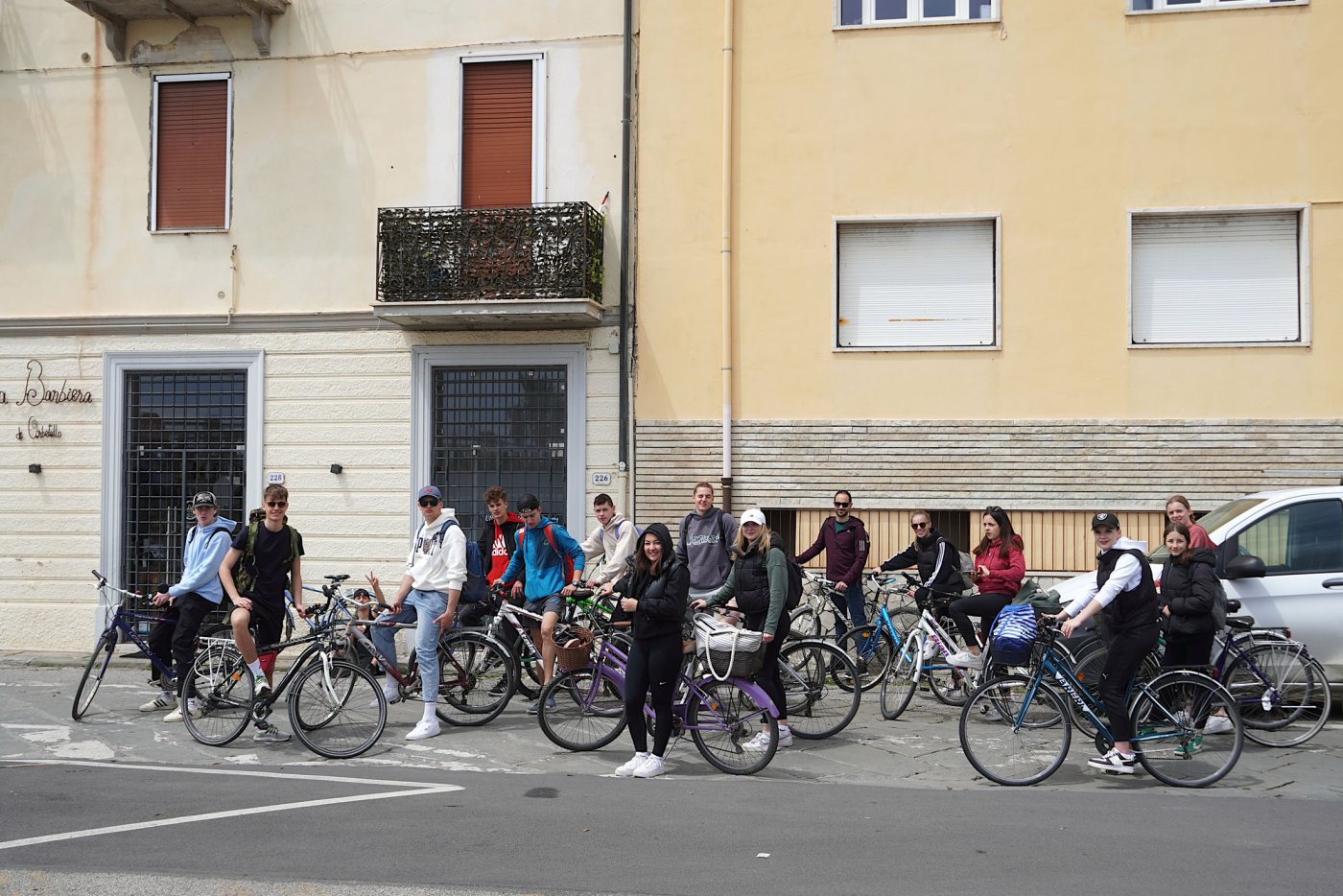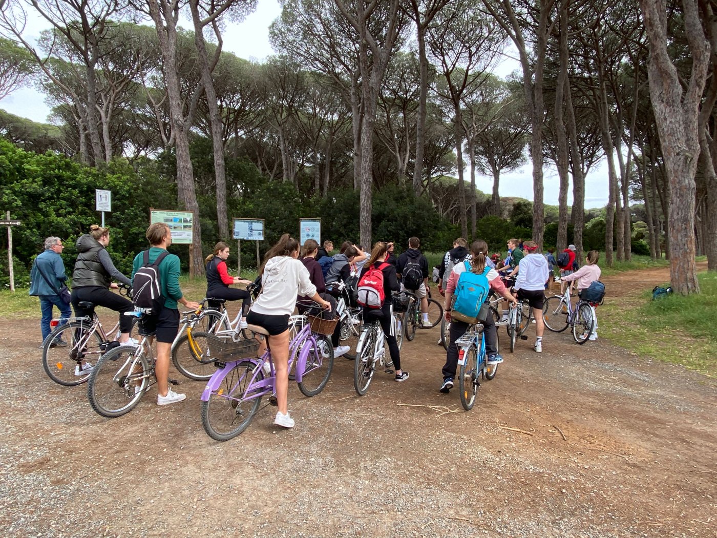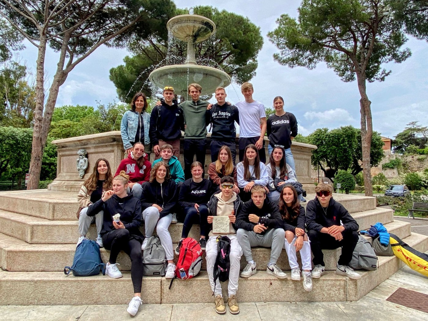 Die Klassen 4H/sob und 4I/sob fanden sich am Sonntag, den 14. Mai 2023 am Bahnhof Meran um 10 Uhr ein. Mit viel Vorfreude und Hoffnung auf schönes Wetter machten wir uns mit einem Bus mit coolem Chauffeur auf die Reise. Nach sechs Stunden Fahrt und so mancher Pause erreichten wir unser Ziel: Orbetello, eine Stadt im Süden der Toskana mit zahlreichen passenden Aktivitäten für Sportklassen wie uns. Am Stadttor erwarteten uns bereits unsere Gastfamilien, denen wir sogleich zugeteilt wurden. Während die Mädchen unserer Klassen ihr Bed&Breakfast aufsuchten, machten wir Jungs uns mit unseren Gastgebern bekannt. In unseren Unterkünften wurden wir bestens versorgt und herzlich aufgenommen. Am ersten Abend der Reise trafen sich die Klassen an der Piazza della Fontana und besuchten zusammen das Maifest, welches zufällig an jenem Abend stattfand.