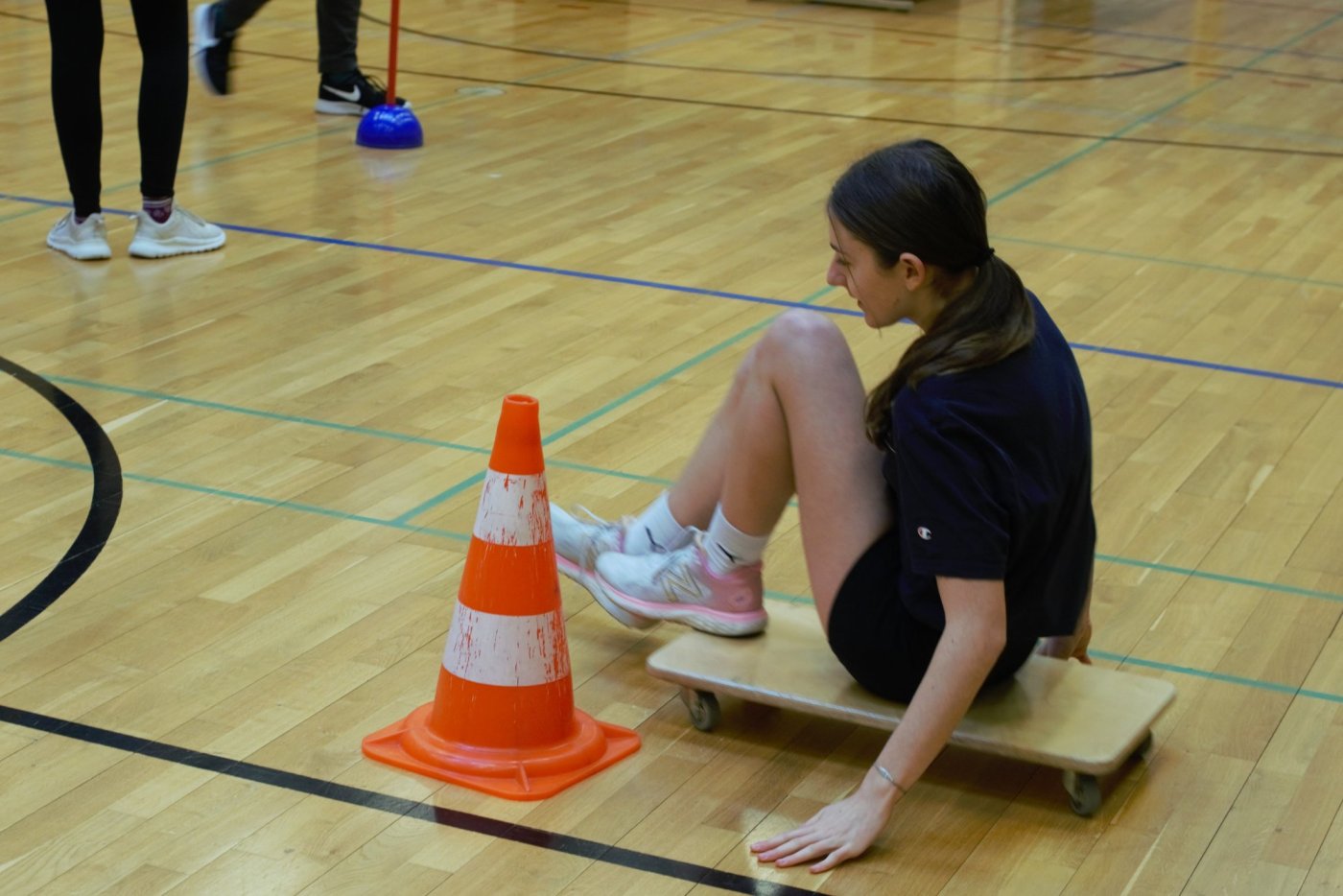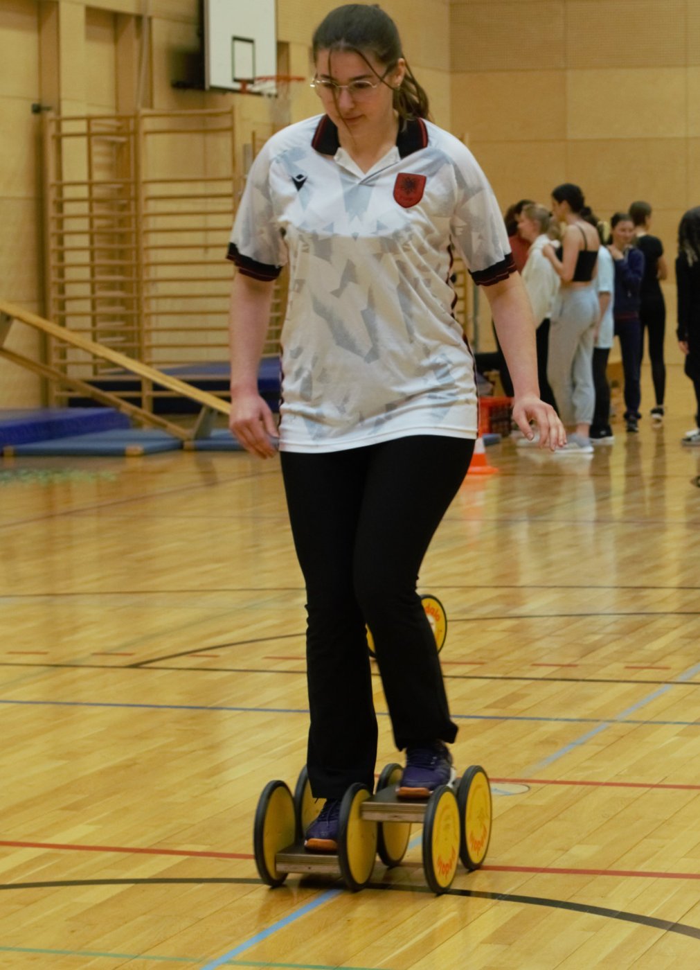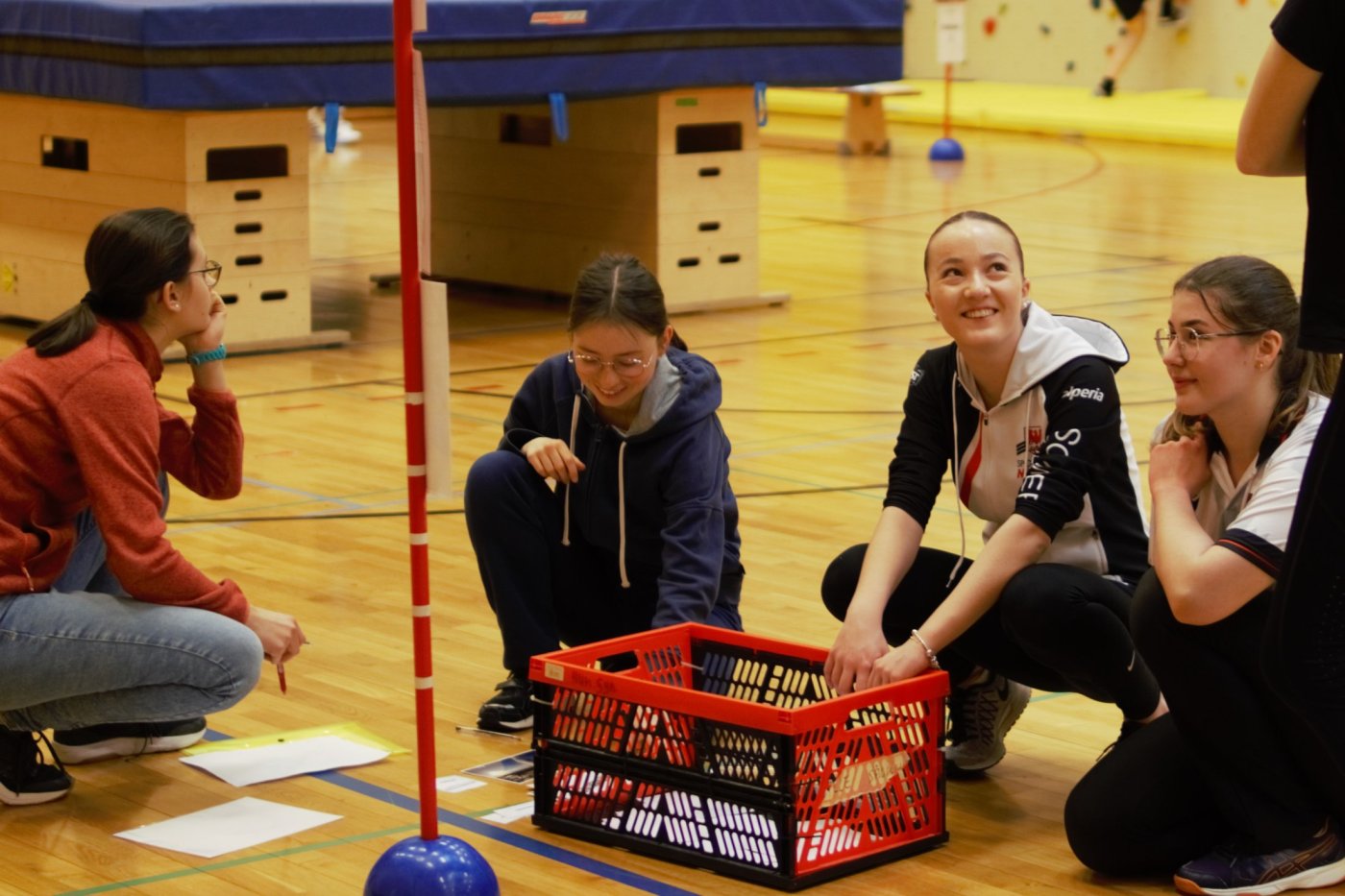 Mehrere Sprachenlehrerinnen hatten für das SprinT (Sprachen in Teams) Event spannende Spiele entwickelt, welche die Sportlehrerin zu Geschicklichkeits- und Schnelligkeitswettbewerben umgestaltet hat. Die teilnehmenden Klassen hatten viel Spaß. In klassenübergreifenden Gruppen feuerten sie ihre Sprachathleten an.