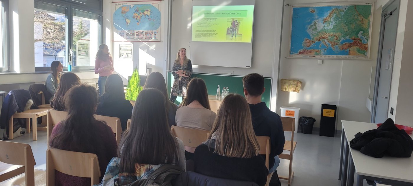 Am Nachmittag von 14:00-15:15 Uhr organisierten die verschiedenen Schulprofile (Sozialwissenschaftliches Gymnasium, Sozialwissenschaftliches Gymnasium mit Landesschwerpunkt Musik, Kunstgymnasium mit Fachrichtung Grafik und Sprachengymnasium) auf den jeweiligen Schwerpunkt abgestimmte Expertenvorträge, damit den Schüler:innen greifbar gemacht werden konnte, welche beruflichen Perspektiven sich mit ihrer Schultypwahl nach der Matura auftun.