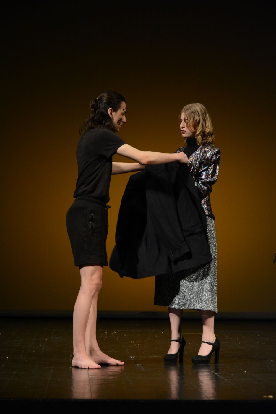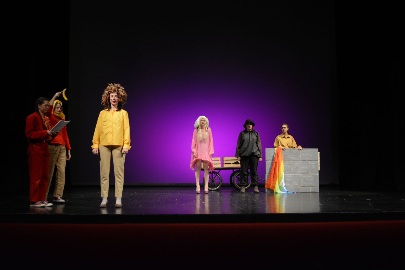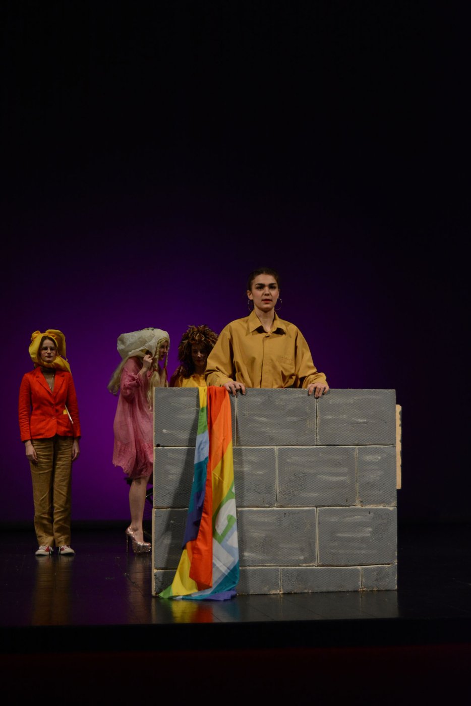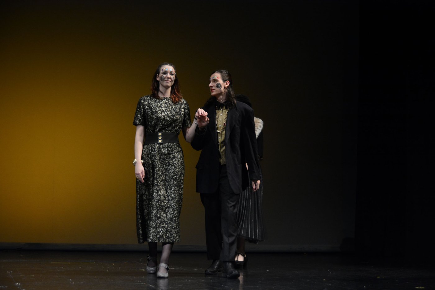 Beim Spiel im Spiel gelang der Regisseurin eine besonders unterhaltsame Variante, indem sie in der Pyramus-Thisbe-Episode den Genderwahn und das festgefahrene weibliche Rollenverständnis aufs Trefflichste karikierte und durch entsprechende Gestik und den emotionslosen Vortrag der Spielenden noch wirkungsvoll unterstrich.