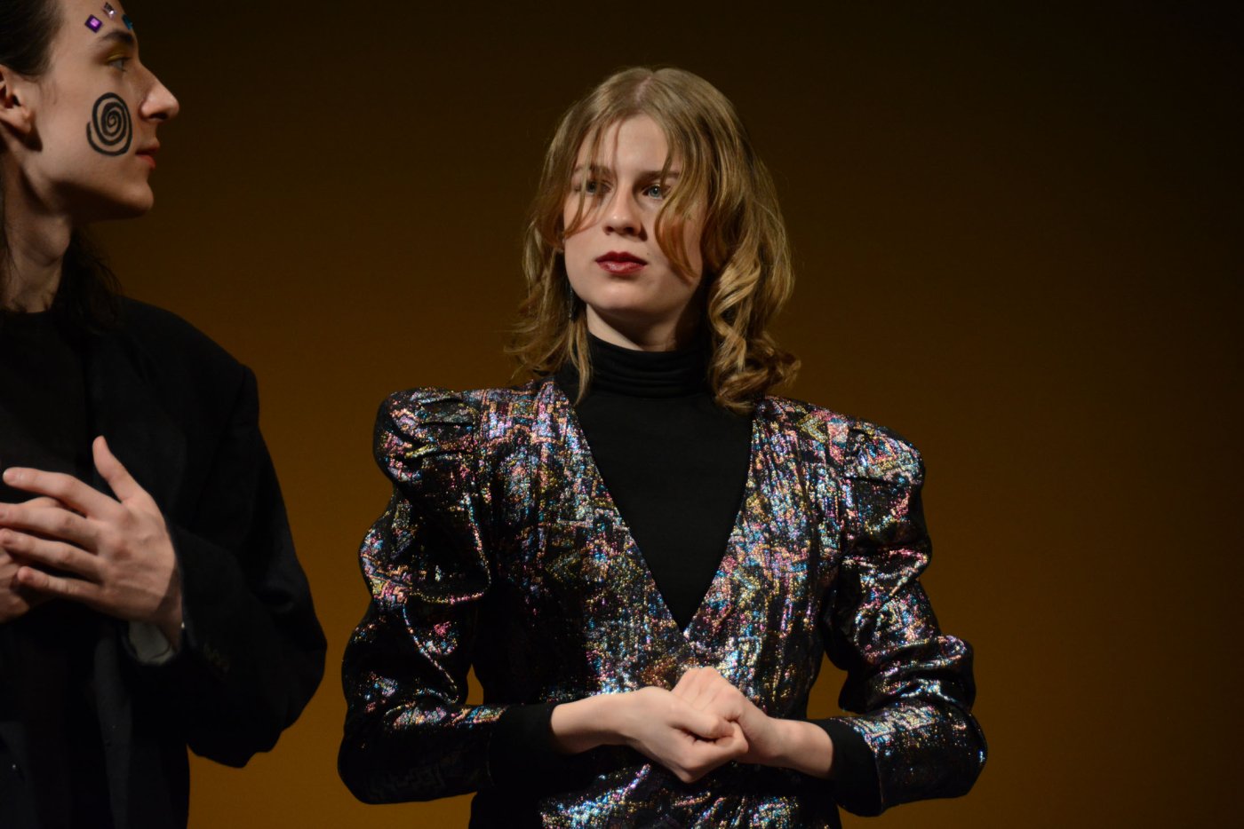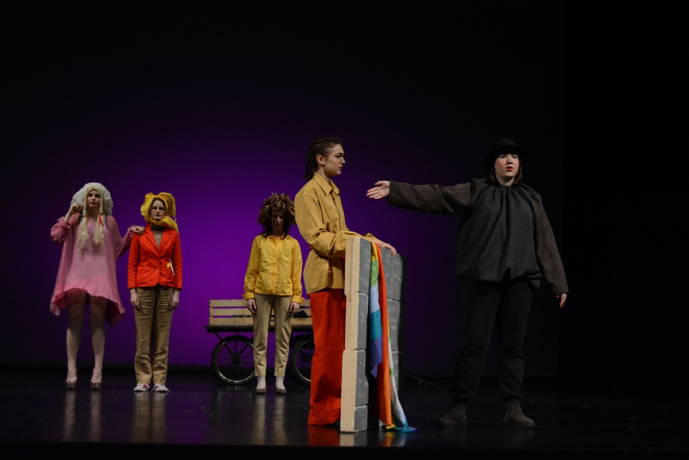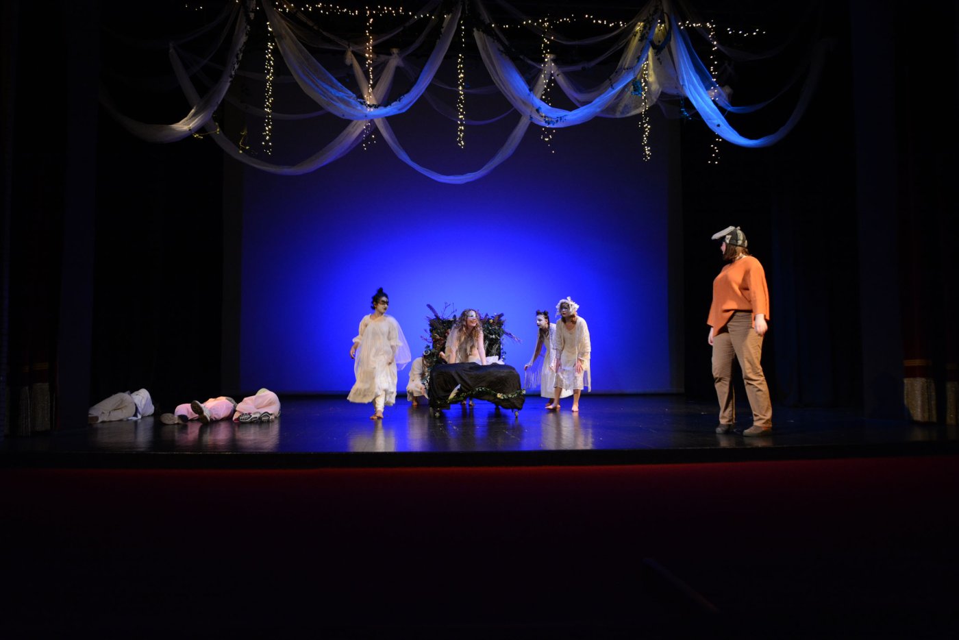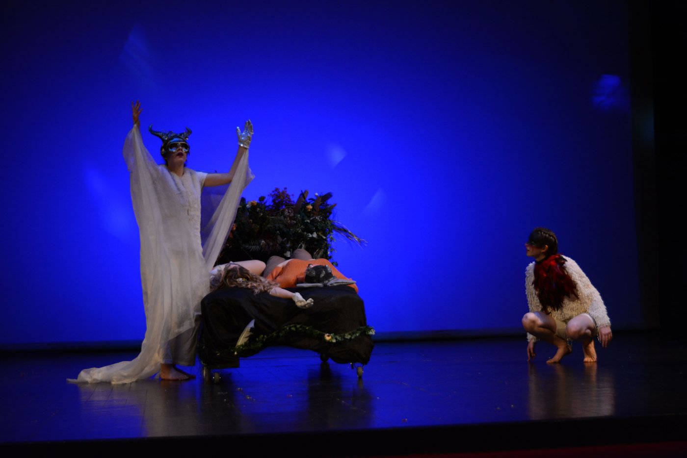 Beim Spiel im Spiel gelang der Regisseurin eine besonders unterhaltsame Variante, indem sie in der Pyramus-Thisbe-Episode den Genderwahn und das festgefahrene weibliche Rollenverständnis aufs Trefflichste karikierte und durch entsprechende Gestik und den emotionslosen Vortrag der Spielenden noch wirkungsvoll unterstrich.