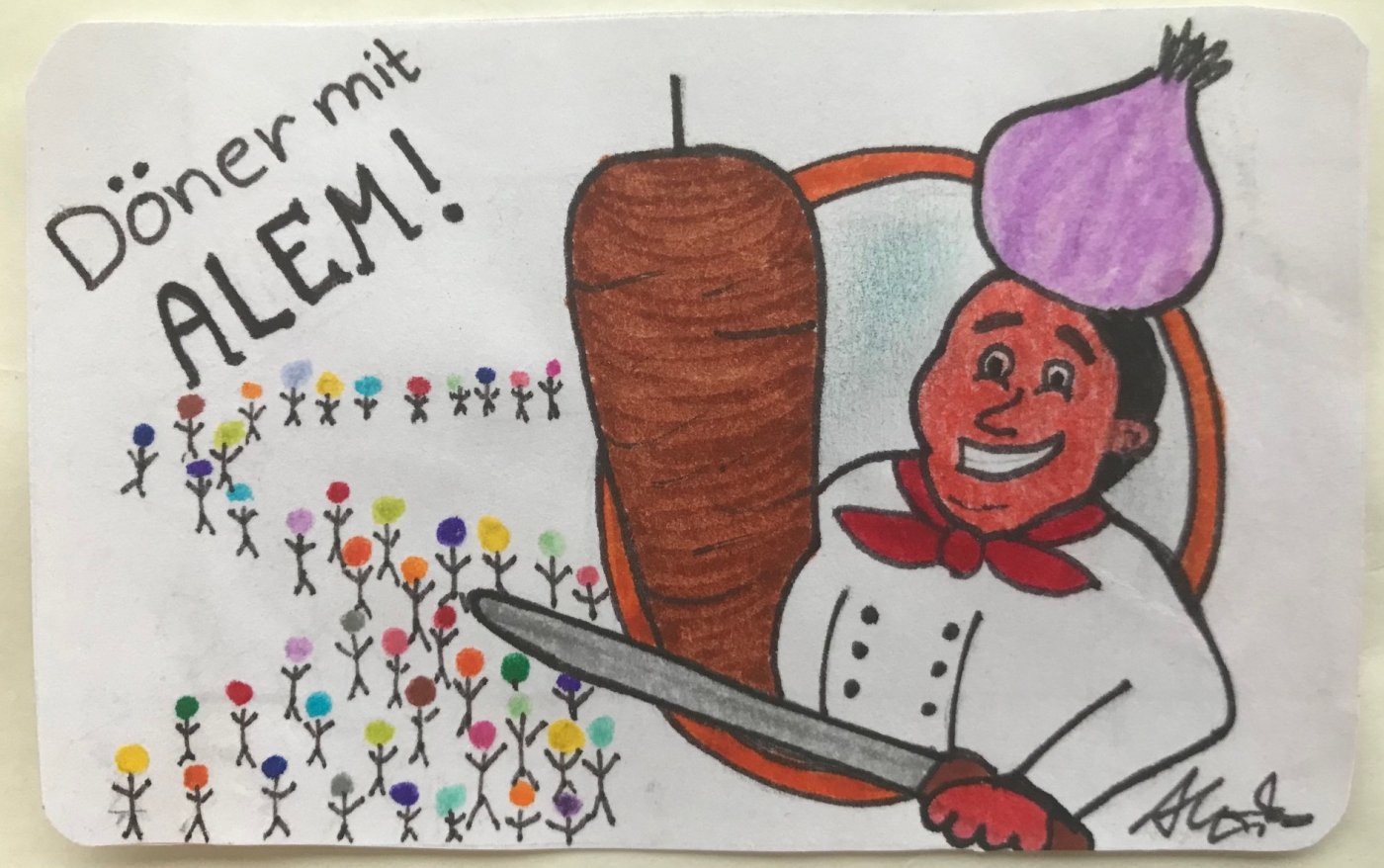 Einige Beiträge tanzen aus der Reihe der Zukunftsblicke – so wird Hades bemüht, um mit diesem Memento-mori-Motiv an unsere Vergänglichkeit zu erinnern. Auch Goethe ist eine Visitenkarte gewidmet, mit dem Wunsch „(…) ein bisschen in dieser Welt verbleiben zu können (…).“! Zu guter Letzt sei noch der lächelnde Dönermann genannt, als Metapher für die Lebensmaxime: Sei freundlich und offen zu jeden.