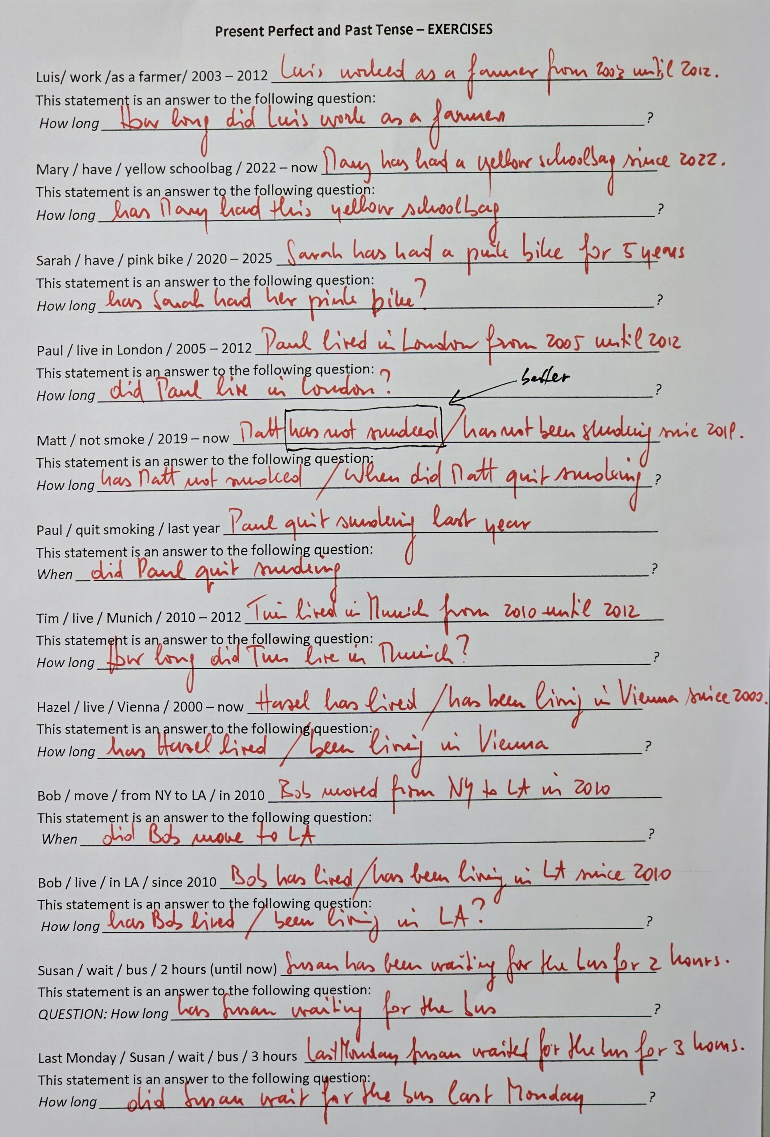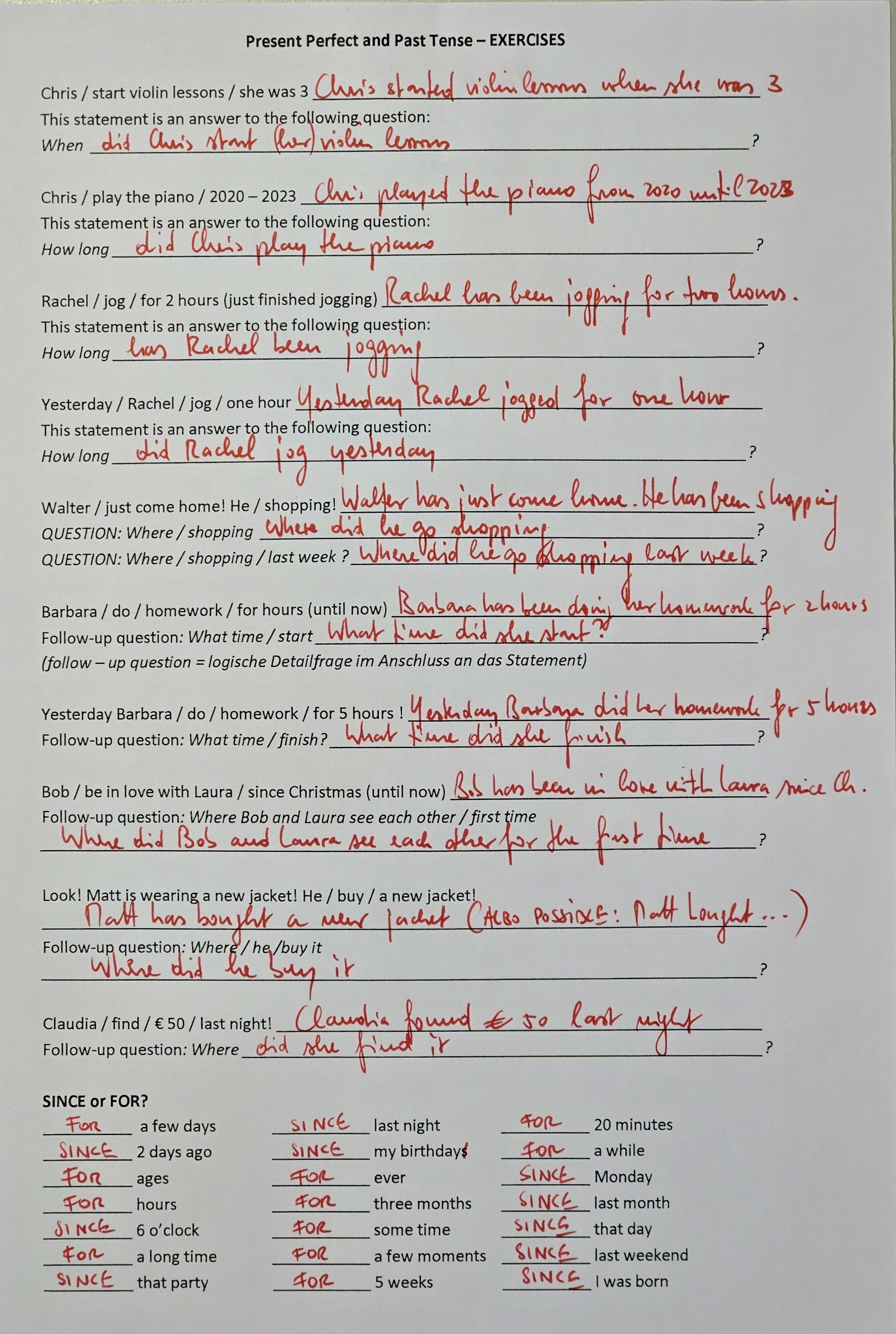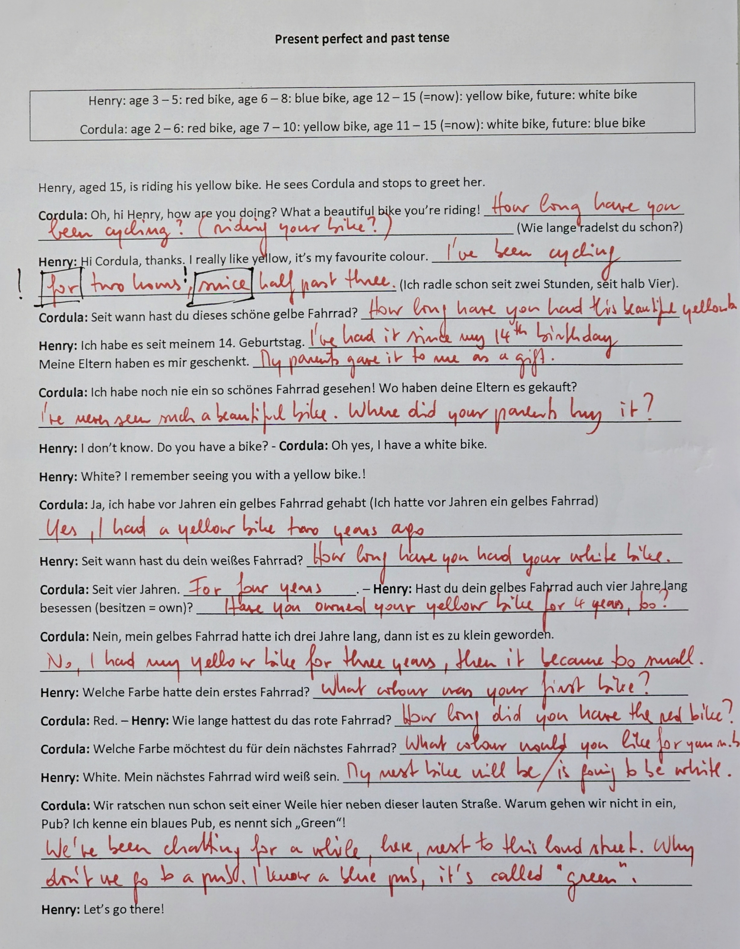 - Present perfect versus past tense (Henry and Cordula and the colorful bikes...)