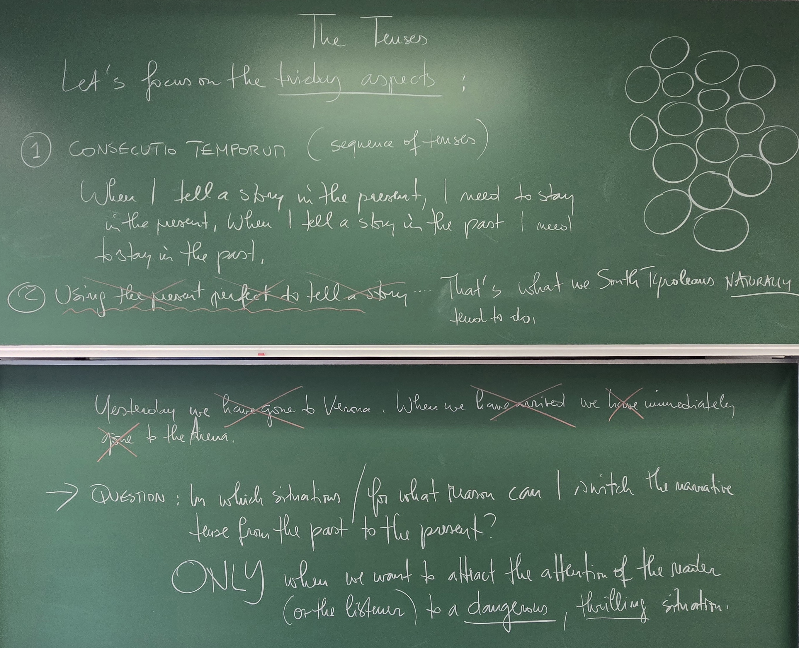 - Narrative tenses (the tricky aspects on the chalkboard)