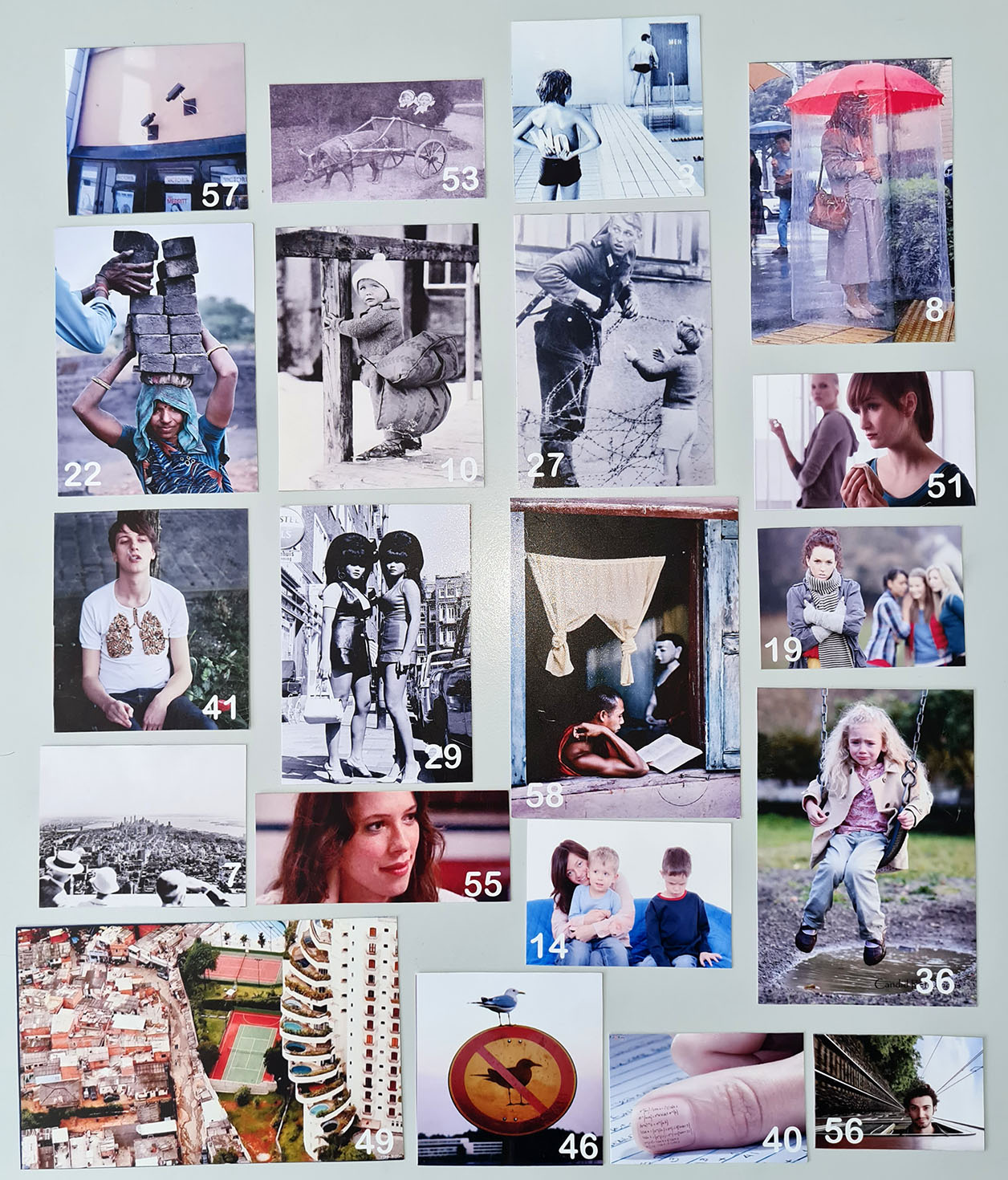 Number 27: barbed wire, shorts, soldier, help, dangerous, risky, secretly, hungry?, war?
