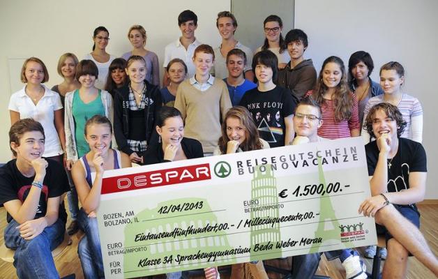 Ein Scheck von 1500 € steht in der Klasse 3a.