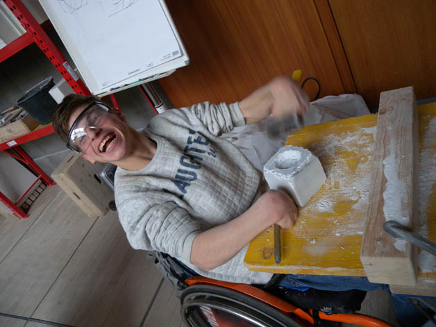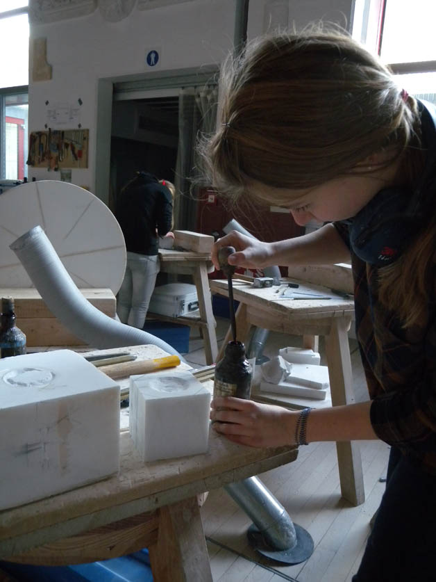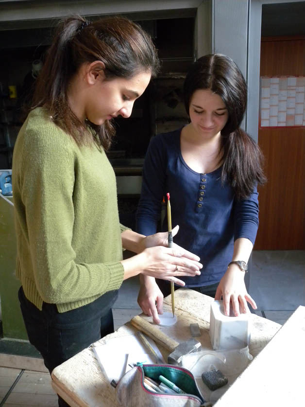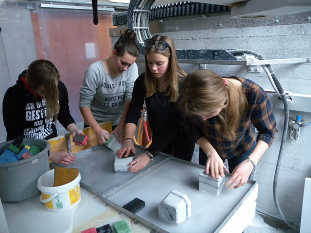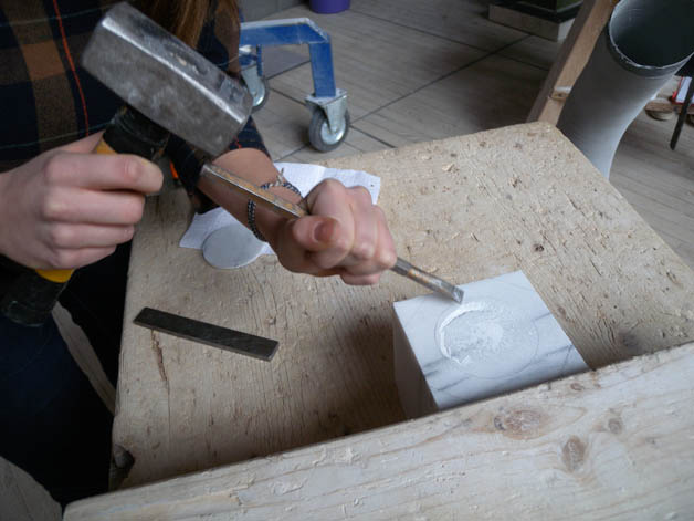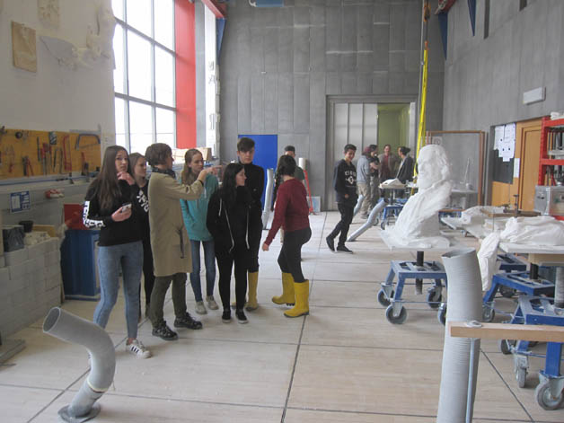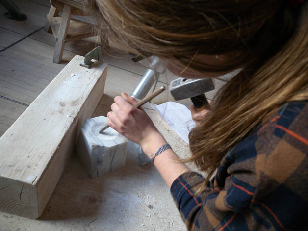 Auch dieses Jahr fahren die ersten und zweiten Klassen des Kunstgymnasiums für einen Tag in die Steinmetzschule nach Laas. Dort erfahren sie unter der professionellen Betreuung von Steinmetzmeisterin Sandra Heidenwolf, wie man mit Marmor umgeht, wie er bearbeitet wird und welch großen Aufwandes es bedarf, eine Skulptur aus Marmor fachmännisch herzustellen. Unsere Schülerinnen und Schüler haben sich auch heuer wieder herangewagt, mit Hammer und Meißel ihr erstes Stück Marmor zu bearbeiten. Mit viel Mühe und Einsatz ist es ihnen gelungen, ein kleines Kunstwerk aus Marmor herzustellen, welches sie mit nach Hause nehmen durften.Die Begegnungen mit Berufsschulen, spezialisierten Handwerksbetrieben, Künstlern und Experten in verschiedenen Bereichen sind für unsere Schülerinnen von großer Bedeutung, da sie dadurch nicht nur mehr Kenntnisse, Fertigkeiten und Fähigkeiten erlangen, sondern das Interesse und die Freude am Tun enorm gesteigert werden.