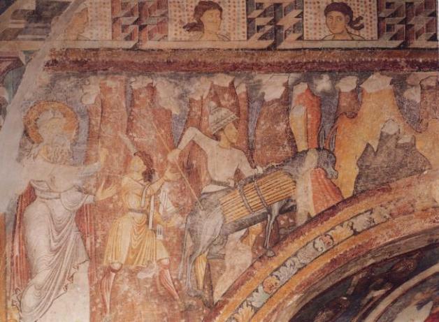 Opferung Isaaks, 1210/20, Fresko, Stirnseite der Ostwand in St. Jakob/Grissian