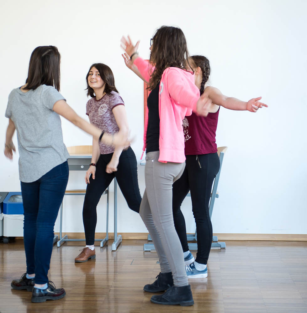 Die Schüler und Schülerinnen der Klassen 3D und 3K Kunst durften an einem interessanten Workshop mit der Künstlerin Barbara Gamper aus London teilnehmen. Es ging um performative Techniken, die gemeinsam erarbeitet und anschließend im öffentlichen Raum aufgeführt wurden.