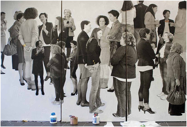 Una classe di un liceo artistico, un gruppo di ragazze interessate all’arte e ai suoi eventi, un artista come professore: ecco gli ingredienti di una miscela esplosiva di creatività e fantasia. Nasce così l’idea di pensare ad uno stilema innovativo del ritratto contemporaneo, individuando il soggetto proprio in quelle professioniste che si occupano d’arte a 360 gradi. La classe è la 4d del Kunstgymnasium di Merano, il professore è lo scultore Ulrich Egger, le signore coinvolte sono: Karin Dalla Torre, direttrice del Dipartimento ai Beni culturali, diritto allo studio, cultura tedesca e musei della Provincia di Bolzano; Letizia Ragaglia, direttrice di Museion; Helga Aufschnaiter von Straudi, architetto e presidente del Künstlerbund; Herta Torggler e Ursula Schnitzer, rispettivamente direttrice e curatrice della Kunst Merano Arte; Lara Toffoli, curatrice del Museo Civico di Chiusa; Ivana Casciaro, gallerista e proprietraia della Galleria Goethe di Bolzano; Antonella Cattani, proprietaria della galleria Contemporary art di Bolzano; Traudi Messini, giornalista; Paula Mair, vicedirettrice del Museo Provinciale di Castel Tirolo; Irene Stauder, gallerista della Galleria Le Carceri, Appiano; Verena Rastner, gallerista della Galleria Museum, Bolzano. Delle protagoniste alle studentesse sono stati presentati i curricola perché i loro percorsi di studio e la realizzazione professionale potessero essere d’esempio per le proprie scelte future. Il concetto di ritratto contemporaneo sviluppato dalle studentesse consiste nel ritrarre la persona nel suo tuttotondo e, allontanandosi radicalmente dal tradizionale concetto di posa, i soggetti sono colti durante una conversazione sull’arte, in questo modo sono stati valorizzati tanto le sembianze che l’impegno e le competenze. Tutte le professioniste sono state, infatti, invitate a Museion, dove le studentesse hanno iniziato il fotoshooting girando intorno alle astanti.