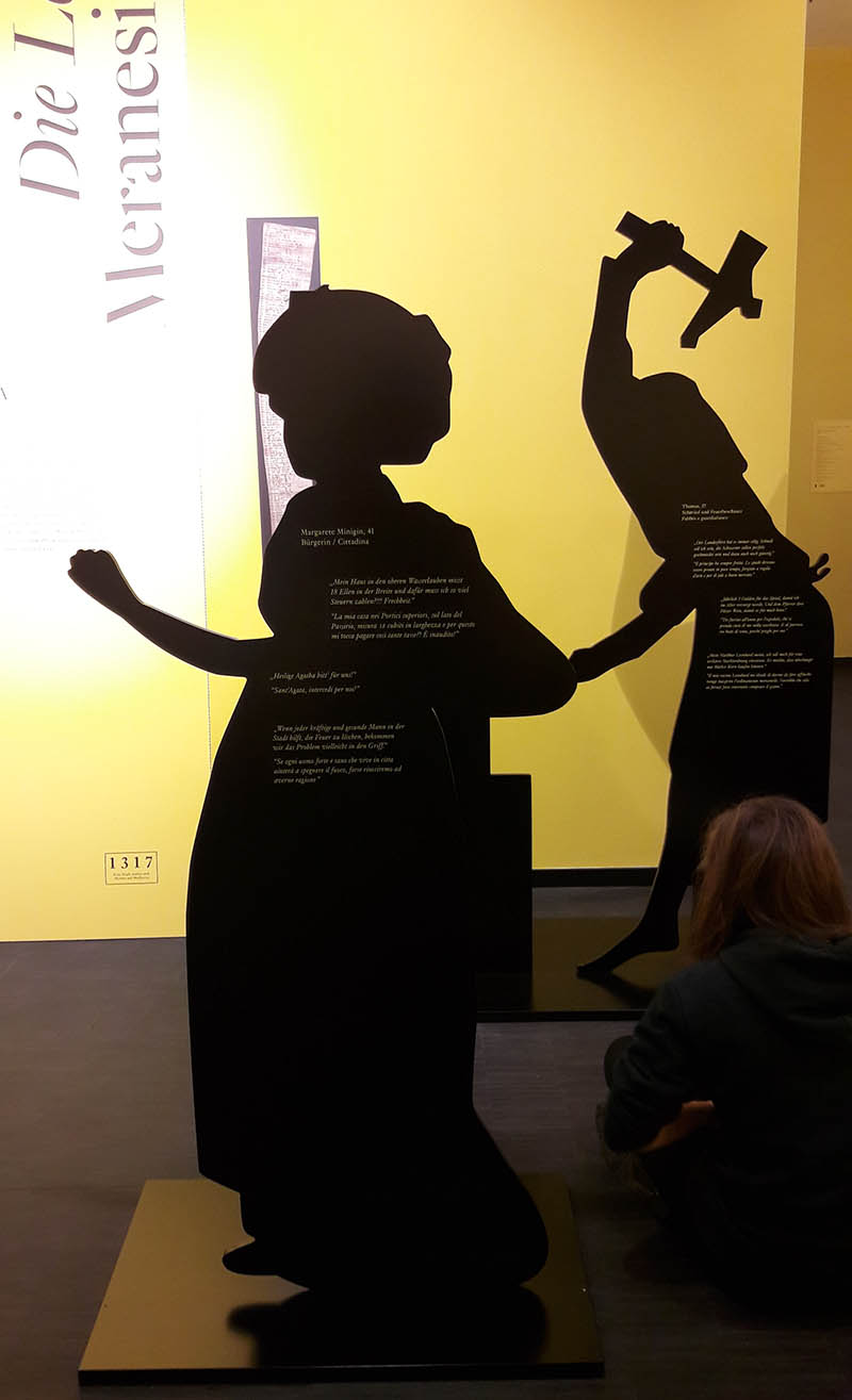 La mostra, organizzata al Museo Civico di Palais Mamming in occasione dei festeggiamenti di Merano 700, si è trasformata in aula didattica di storia per gli studenti della classe 3K/ku che hanno potuto comprenderne la vita quotidiana, il commercio, la legislazione utilizzando l'apparato didascalico in lingua italiana. Gli studenti hanno trovato molto divertenti anche le silhouettes dei cittadini che narrando la propria storia permettevano uno sguardo nella realtà storica da un punto di vista semplice e immediato.
