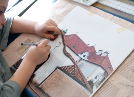 Eine Auswahl von Schülerinnen und Schülern der Klasse 2D ku verbrachte zwei Vormittage an der Zollschule in Lana und hat zusammen mit den Schülerinnen und Schülern der Grundschule zum Thema „Lana“ gemalt und gearbeitet. Die Kinder setzten nach Vorlagen Bilder über Lana malerisch um und konnten dabei ihre künstlerische Phantasie völlig frei entfalten. Bei der farbenfrohen Umsetzung der Bilder auf Holztafeln halfen unsere Schülerinnen und Schüler mit viel Einsatz und Enthusiasmus mit und so gelang es allen zusammen, schöne und beeindruckende Gemälde zu schaffen. Während eine kleine Auswahl von diesen 500 Kunstwerken in den großen Schaukästen im Zentrum von Lana in Form einer Ausstellung der Öffentlichkeit präsentiert wird, werden die restlichen Bilder in der Zollschule ausgestellt.