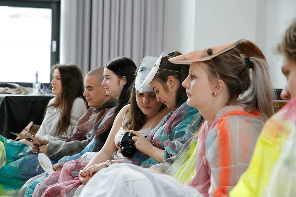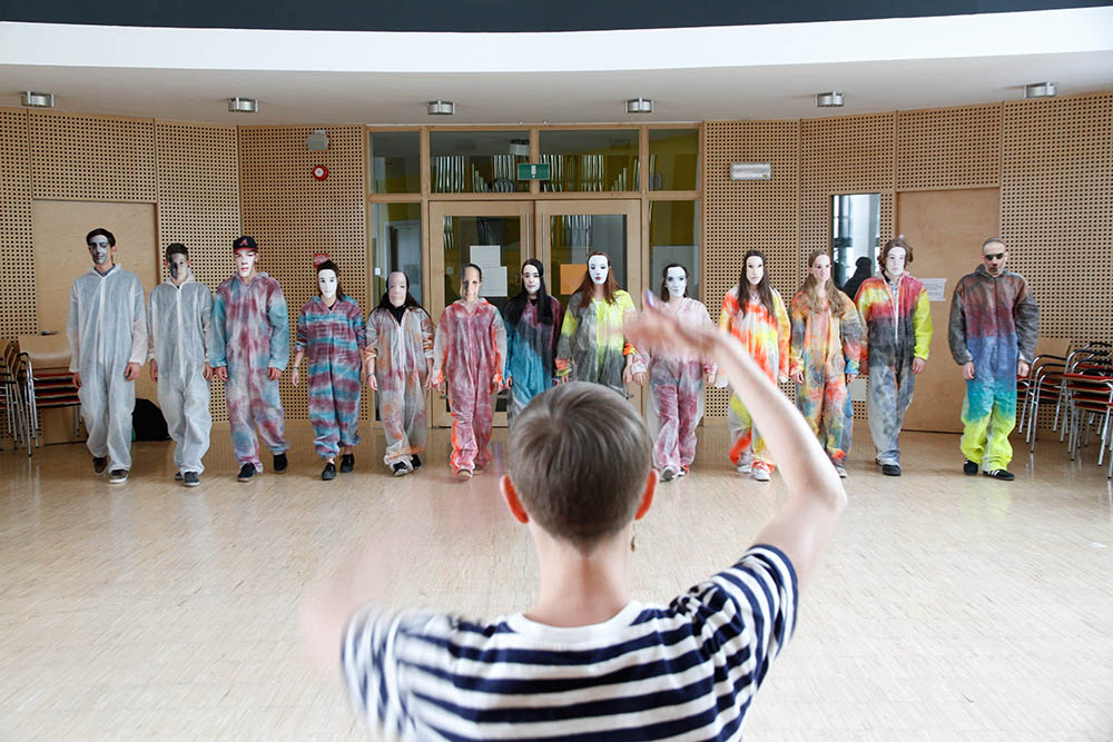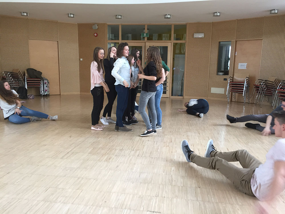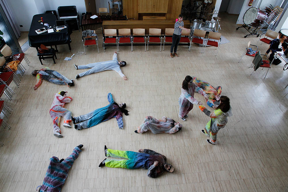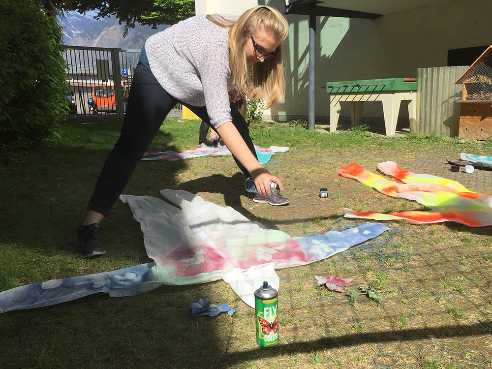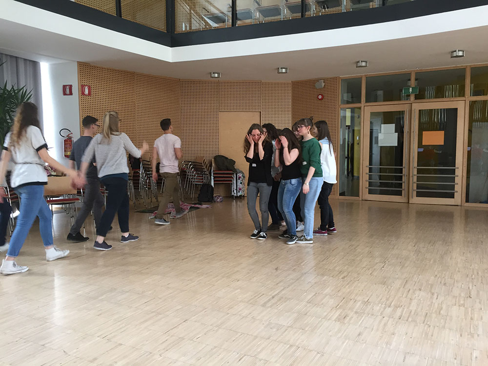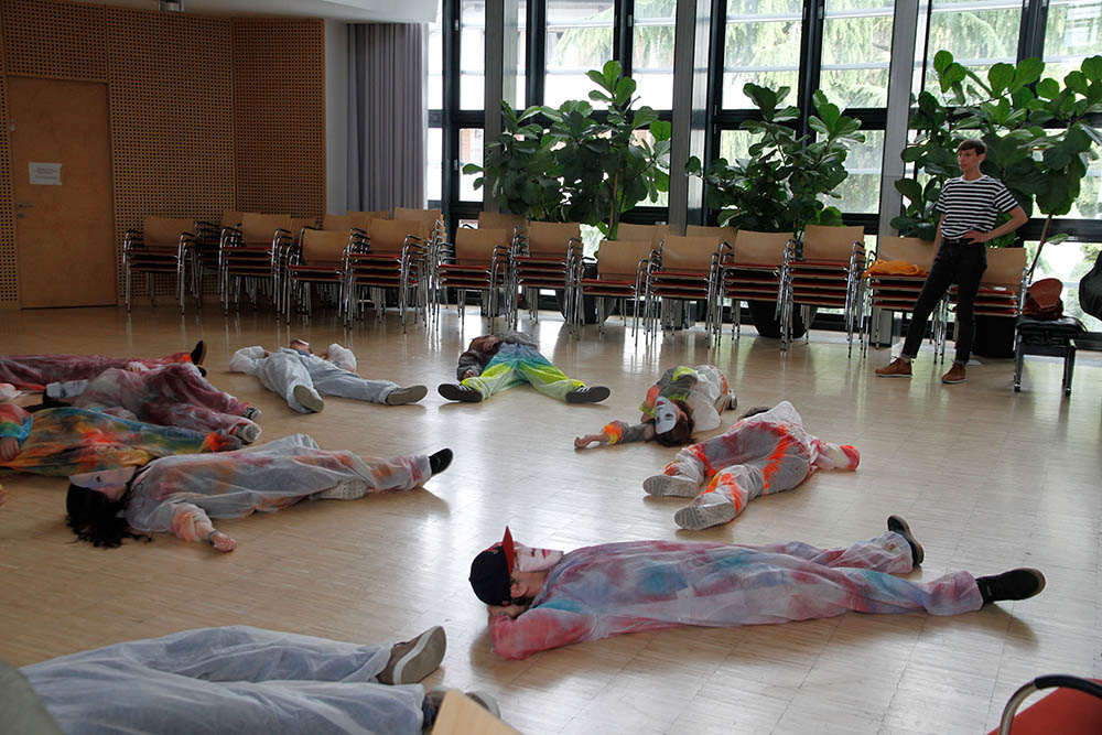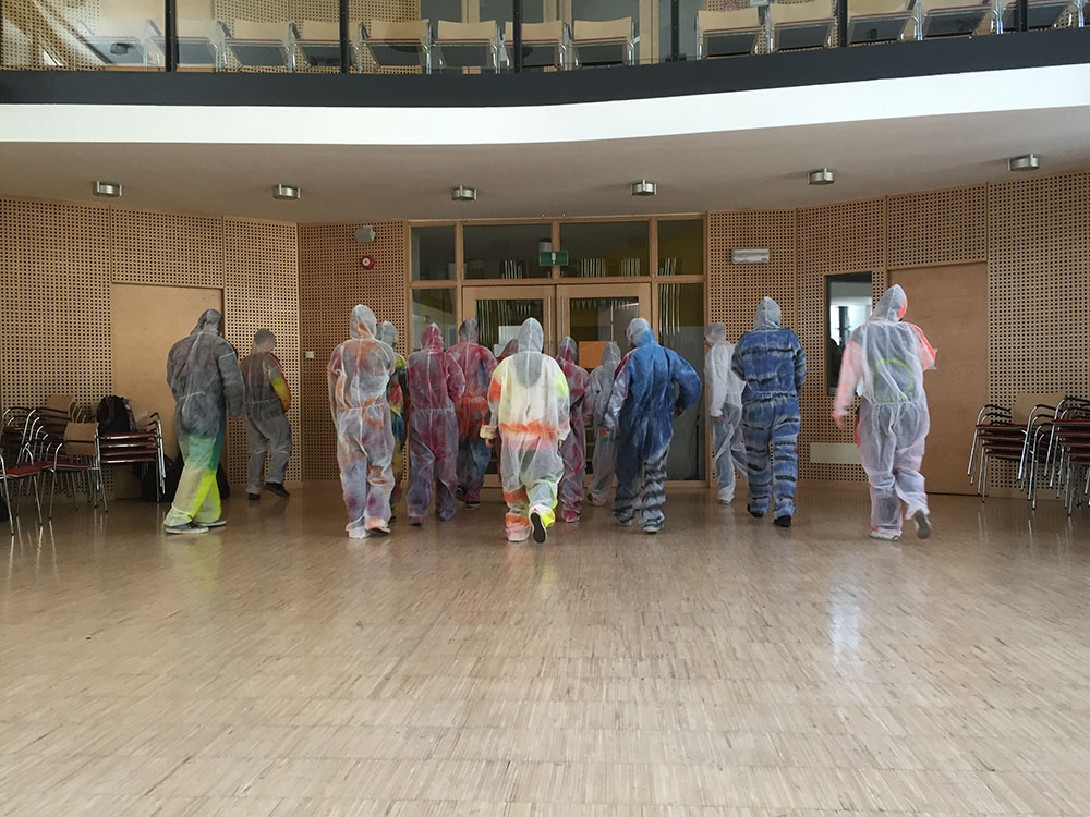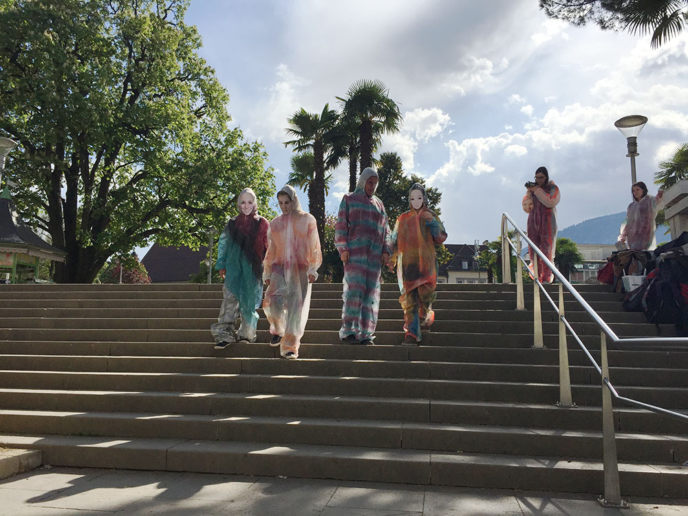Die in London lebende Künstlerin Barbara Gamper erarbeitete mit den Schülerinnen und Schülern der 3. und 5. Klasse K/Ku ein interessantes Projekt. Ausgehend von performativen Techniken und Körpererfahrung zu den Themen „Wie siehst Du die Zukunft? Real/Virtuell, wo liegt die Grenze? Europa, damals und Heute...? entstanden in Kleingruppen interessante Bewegungsabläufe, welche dann im öffentlichen Raum von Meran aufgeführt und filmisch dokumentiert wurden. In einen Overall gekleidet und mit einer Maske versehen, konnten alle Beteiligten sich in einer neuen und anderen „Rolle“ erleben.