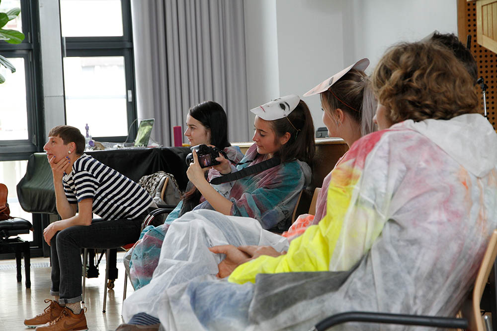 Die Performancetechnik zum einen, die filmische Dokumentation und Technik des Filmschnitts zum anderen _waren eine interessante Bereicherung für die Kunststudenten.
