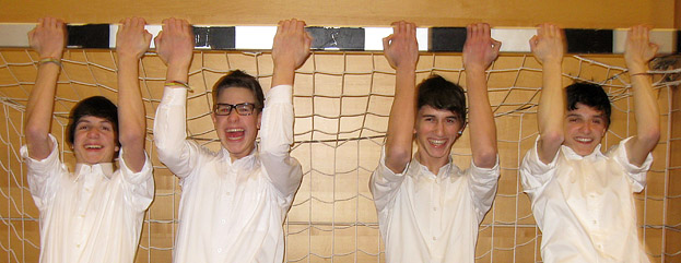 Beim Wettbewerb „Musik in kleinen Gruppen",veranstaltet vom Verband Südtiroler Musikkapellen, der heuer am 11. Februar 2012 in Auer stattfand, konnten die Schlagzeugschüler der Gymnasien Meran wieder ihr großes Talent unter Beweis stellen. Insgesamt nahmen vier Schlagzeugensembles aus ganz Südtirol an diesem alle zwei Jahre stattfindenden Wettbewerb teil. Teilnahmeberechtigt sind alle Musikkapellen, Musikschulen sowie Mittel- und Oberschulen mit musikalischer Ausrichtung. Max Calanducci, Simon Öggl, Nico Platter und Thomas Schölzhorn konnten als Quartett und als Duo (Calanducci – Öggl) in ihren jeweiligen Kategorien sehr gute Ergebnisse erzielen. (Quartett 89,33 von 100 – Duo 91,33 von 100 Punkten).