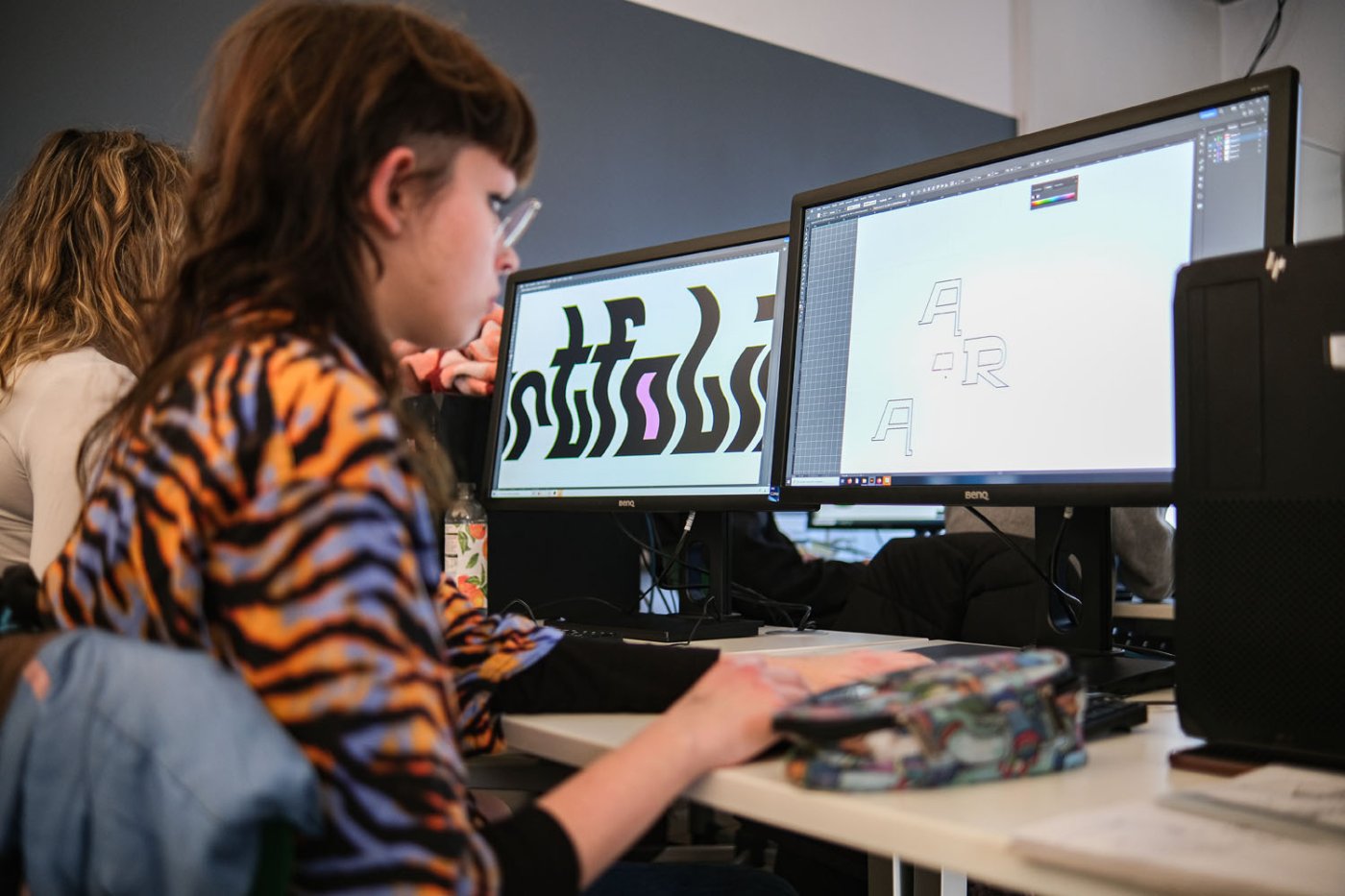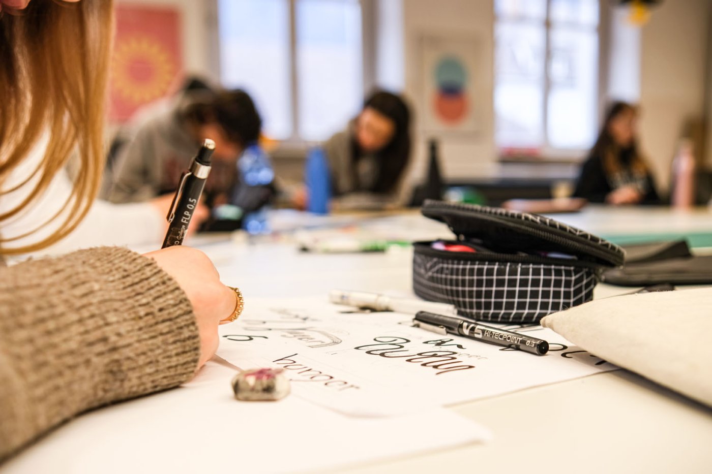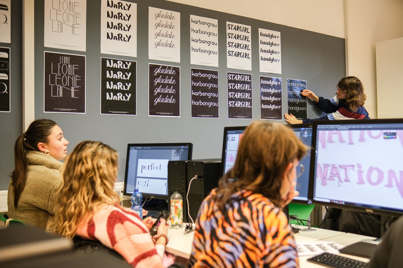 In den Abschlussklassen des Kunstgymnasiums mit Fachrichtung Grafik findet ein spezifischer Expertenunterricht z.B. zum Thema Schriftgestaltung und Typografie statt. Dabei werden externe Referenten*innen wie z.B. Franziska Weitgruber, Laurin Kofler etc. in die Schule eingeladen um gemeinsam ein praktisches Projekt zu erarbeiten. Die Schüler*innen werden dabei intensiv durch individuelles Coaching von den Referenten*innen und den jeweiligen Fachlehrpersonen betreut. Als Abschluss werden die Arbeiten im Schulgebäude in Form einer Ausstellung präsentiert.