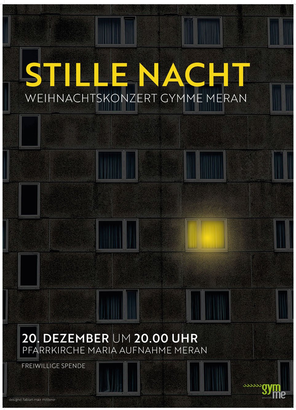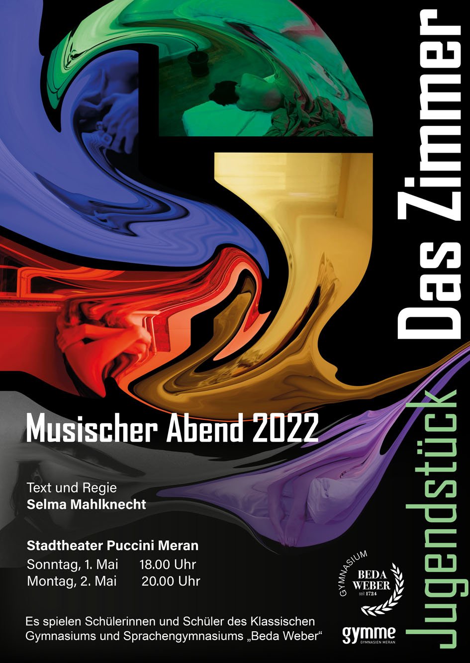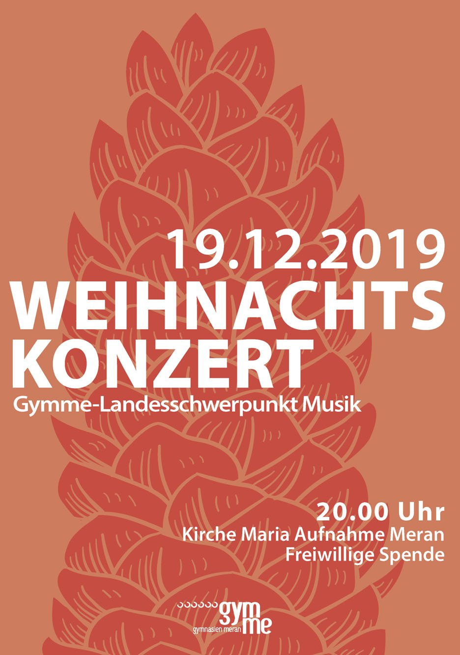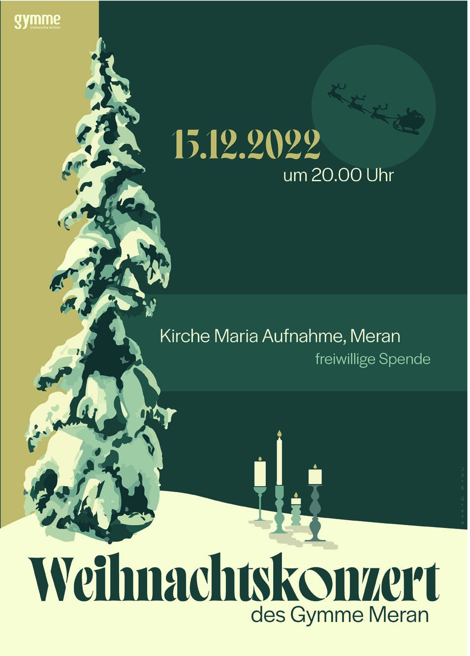 Die Fächer Grafik Werkstatt und Grafik Fachtheorie erarbeiten für die verschiedenen Schulstellen der Gymnasien Meran grafischen Unterlagen wie z.B. Plakate, Flyer und Einladungskarten. Für verschiedene Veranstaltungen wie z.B. Konzerte, Theateraufführungen, Maturabälle usw. werden innerhalb des jeweiligen Fachs Schülerwettbewerbe veranstaltet um verschiedene Ideen und Konzepte zu den jeweiligen Veranstaltungen grafisch zu gestalten.