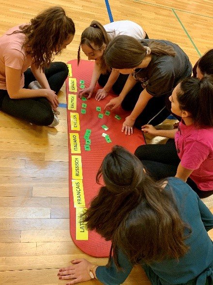 Im Rahmen unseres Mehrsprachencurriculums SprinT (Sprachen in Teams) veranstalten wir jedes Jahr das Sprachen und Sport Turnier für alle 2. Klassen des Sprachengymnasiums. Es soll Sprachen und Sport in Verbindung setzen, Mehrsprachigkeit und Bewegung fördern und viel Spaß machen!