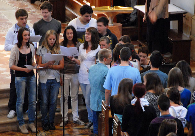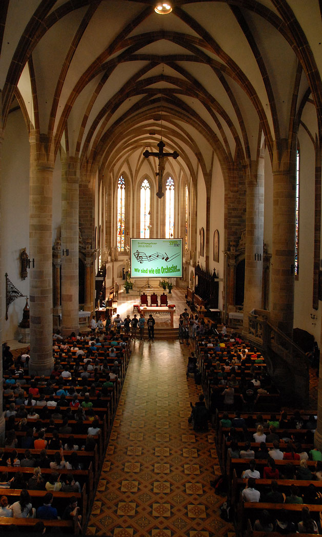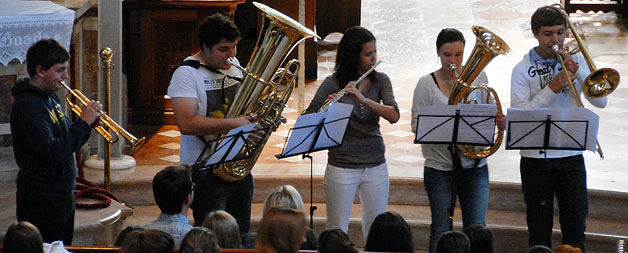 Unser Leitgedanke zieht in diesem Schuljahr Parallelen zur Musik: Die Gymnasien Meran sind wie ein großes Orchester, in dem jeder Mitwirkende sein Bestes gibt, damit der Gesamtklang gut und harmonisch wird. Dabei gilt es, sein Augenmerk gleichzeitig auf das eigene Instrument und auf das ganze Orchester zu legen. Die Klasse 4C umrahmte die Feier mit musikalischen Darbietungen. Schuldirektor Dr. Martin Holzner ehrte bei dieser Gelegenheit die beiden Kandidatinnen Manuela Kofler und Charlotte Aurich, die im Juli bei der Abschlussprüfung hundert Punkte erzielten. Letztere nahm die Glückwünsche persönlich entgegen.