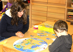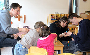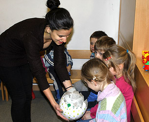 Die Kl. 4A hat im Rahmen ihres Pädagogik-unterrichtes nun bereits zum zweiten Mal den Kindergarten in Naturns besucht. Dieser besteht aus sechs verschiedenen Sektionen und bietet dadurch die Möglichkeit, dass sich die Schüler und Schülerinnen auf die verschiedenen Kindergartengruppen aufteilen, ohne dadurch den normalen Tagesablauf zu sehr zu stören. Im November hat die Klasse zunächst das Konzept des Kindergartenteams und im Besonderen die Pädagogik des Janusz Kroczak kennen gelernt, auf den sich die Erzieherinnen in ihrer täglichen Arbeit mit den Kindern stützen. Danach haben sich die Schüler und Schülerinnen auf die verschiedenen Gruppen verteilt und dort das Spielverhalten der Kinder beobachtet. Für den von Beginn an geplanten zweiten Teil des Besuches am 17. Februar hat sich die Klasse auf die kindergerechte Präsentation eines Bilderbuches vorbereitet. Nicht nur, dass sich die Kindergartenkinder über diesen Moment des erneuten Zusammentreffens freuten und mit großer Aufmerksamkeit der Geschichte lauschten, auch die Schüler und Schülerinnen selber hatten an dieser Aufgabe sichtlich großen Spaß. In der Begegnung zwischen Schule und Praxis, also konkreten späteren Arbeitsfeldern, verbirgt sich immer die Möglichkeit, dass der ein und andere sich in seinem Berufswunsch, nämlich später mit Kindern zu arbeiten, bestärkt fühlt.