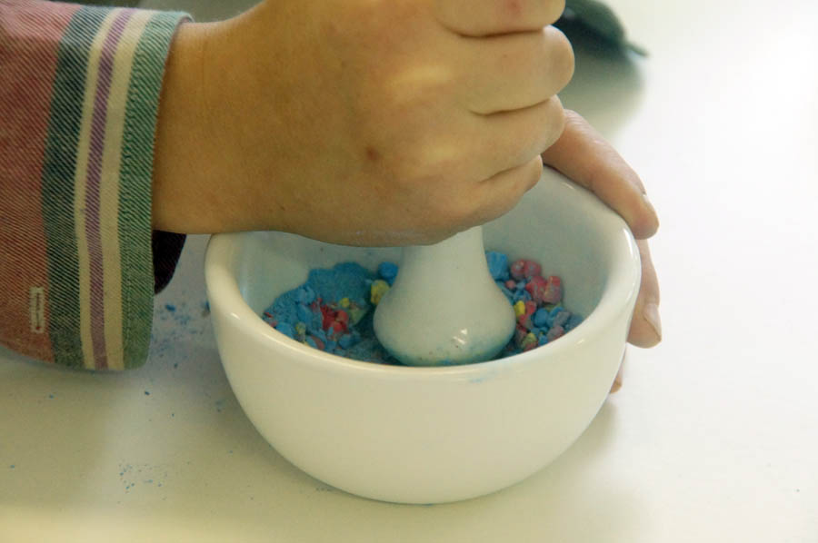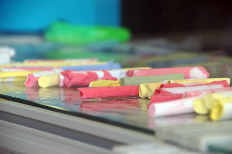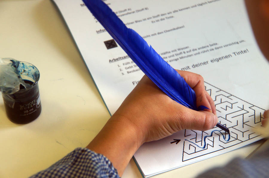 Am Ende des Vormittags probierten wir noch im Innenhof die selbsthergestellten Straßenkreiden aus, bevor es für die Kinder wieder zurück in ihre Schule ging. Als Andenken durften die Schüler selbsthergestellte Tinte und selbstvergoldete Münzen mit nach Hause nehmen.