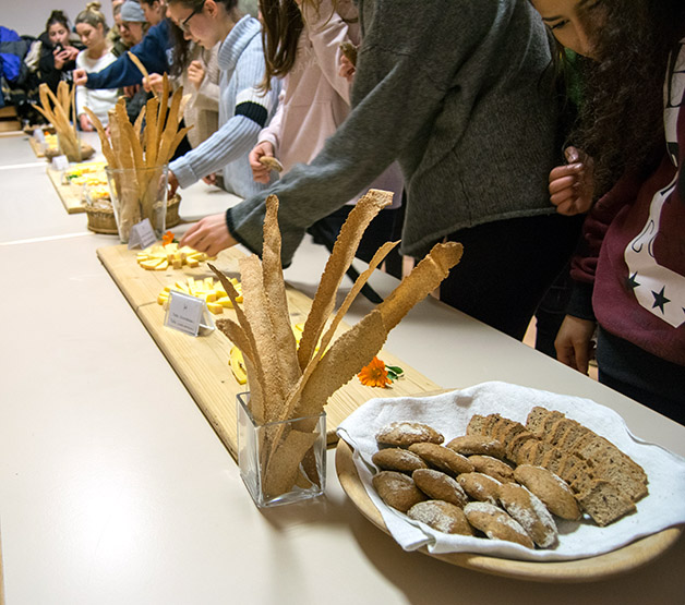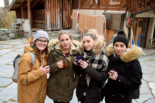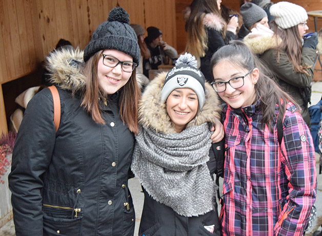 Gegen 12.00 Uhr wanderten wir bei schönem Wetter, aber bei Eiseskälte nach Schleis und wurden dort im Vereinshaus mit Tiroler Spezialitäten verköstigt. Laras Mutter und Leas Großmutter haben den Saal liebevoll dekoriert. Ein Höhepunkt des Tages war der Vortrag des Biobauern Alexander Agethle, der einleitend über die globalen Zusammenhänge in der Milchwirtschaft informierte, dann aber die Beweggründe aufzeigte., die dazu führten, dass er den heimatlichen Erbhof in einen biologisch geführten Betrieb umstrukturierte, der sich auf die Käseherstellung spezialisiert hat. Nach der Käseverkostung begaben wir uns zum Hof und besichtigten die Hofkäserei „Engelhorn“. Um 17.00 Uhr fuhren wir mit dem Zug zurück nach Meran.