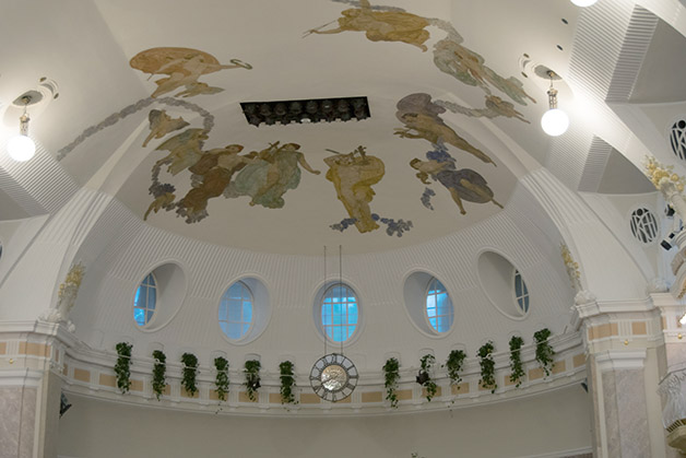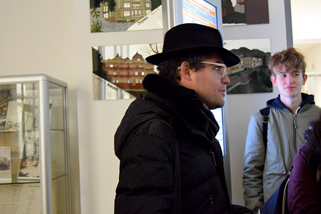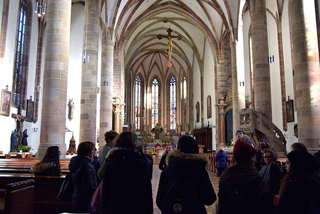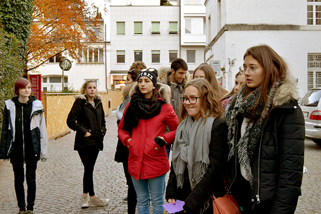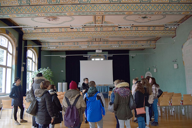 Um 12.30 Uhr trafen wir uns mit der anderen Gruppe zum Essen in der Mensa des Liebeswerks. Nach einer kurzen Mittagspause waren wir an der Reihe mit der Stadtführung, die thematisch der Entstehung des Tourismus gewidmet war. Die Erkundungstour führte über das ehemalige Grandhotel Emma zum Kurmittelhaus, das als Kur- und Badeanstalt 1907 in Betrieb genommen wurde. Der Rundgang führte uns dann zur Evangelischen Christuskirche an der Promenade. Anschließend besichtigten wir das Stadttheater und zum Schluss das Kurhaus. Unsere Gäste waren begeistert von den detailreichen Erklärungen Patrick Rinas und auch wir haben Meran, wo wir unsere Oberschulzeit verbringen, auf eine intensive Weise kennengelernt. In Erinnerung bleiben werden uns die Worte Patrick Rinas, der auf die Weltoffenheit Merans im 19. Jahrhundert verwies, als die Stadt Menschen verschiedener Kulturen und Religionen beherbergte.