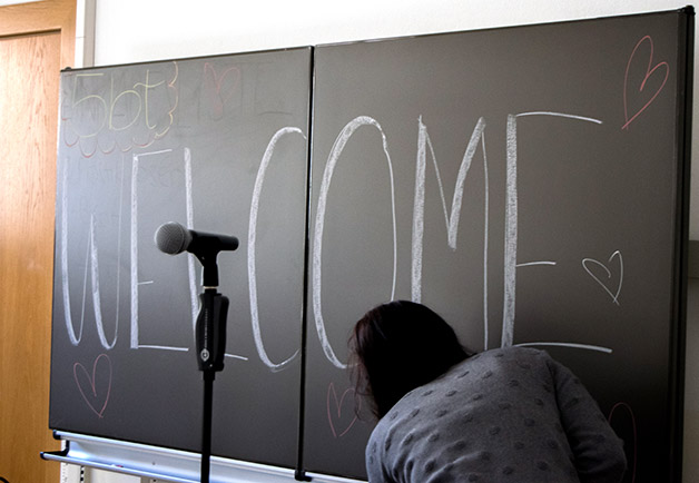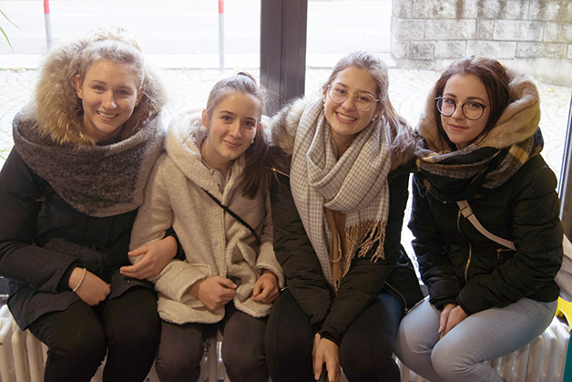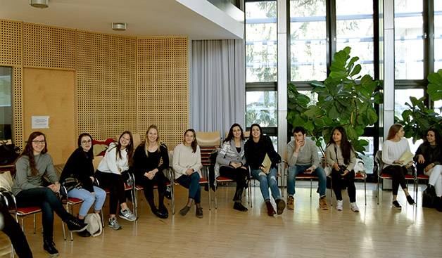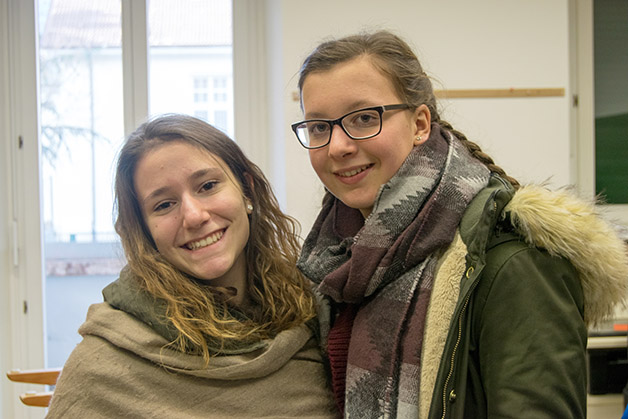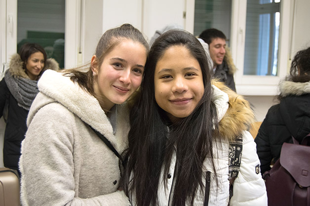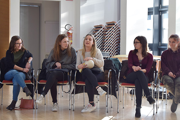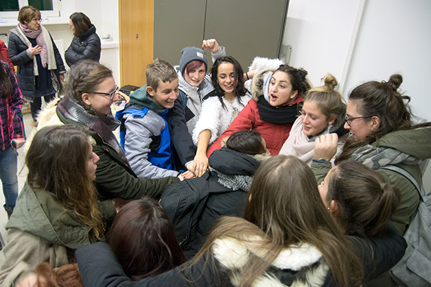 Das Projekt begann mit einer kleinen Aufregung, als uns die Mitteilung erreichte, dass die Partnerklasse mit den Begleitpersonen Frau Renate Gilli und Frau Emanuela de‘ Saraca bereits eine Stunde früher am Meraner Bahnhof ankommen würde. Nichts desto trotz bekamen wir ein reichhaltiges Büffet mit selbst gemachten Leckerbissen rechtzeitig hin und einige Schüler holten die Jugendlichen mit ihren Begleitpersonen am Bahnhof ab und begleiteten sie in die Aula Magna unserer Schule, wo die offizielle Begrüßung durch unseren Direktor Dr. Martin Holzner erfolgte. Fabian aus unserer Klasse gab auf der Gitarre ein Musikstück zum Besten und spätestens beim Kennenlernspiel war das Eis gebrochen.