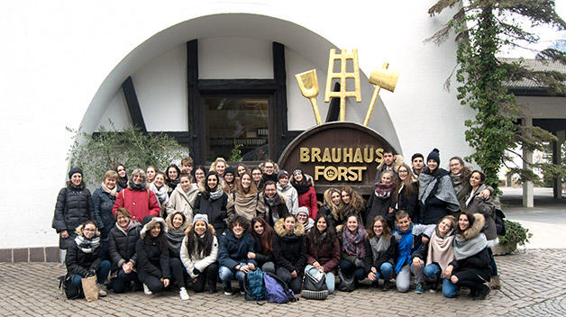 Der letzte Tag führte uns in die Spezialbierbrauerei Forst nach Algund, wo wir die Gelegenheit bekamen, unter der fachkundigen Führung von Max Ghetta die Brauerei von innen zu sehen und die Etappen der Bierherstellung zu verfolgen. Unsere Gäste verfügten als Hotelfachschüler über detaillierte Vorkenntnisse. Neben dem modernen Sudhaus konnten wir auch die riesige Lagerhalle, wo das Bier maschinell abgefüllt wird, betreten.