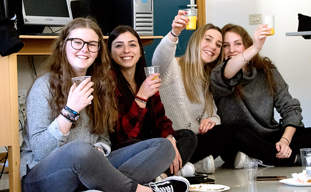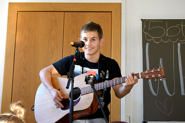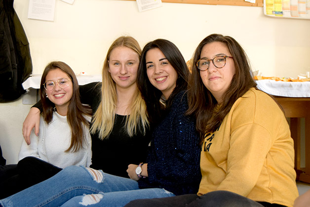Wir führten die Schülerinnen und Schüler aus dem Veneto noch durch unser Schulgebäude und begaben uns dann in die Außenstelle, wo wir als Klasse untergebracht sind und stärkten uns bei einem reichhaltigen Büffet. Fabian entpuppte sich als guter Unterhaltungsmusiker und es herrschte gleich eine gute Stimmung, so, als ob wir uns schon lange kennen würden.
