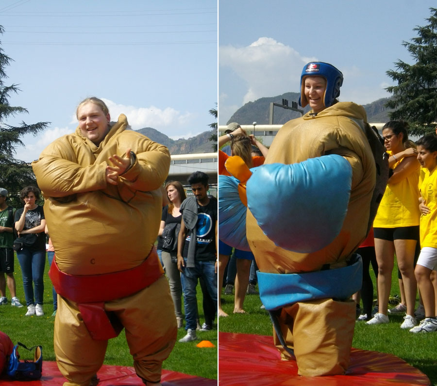 Im Rahmen der Spiele ohne Grenzen am 06. April, beim bekannten Studentenfestival in Bozen belegte unsere Schulmannschaft bestehend aus den Schüler/innen Philipp Agostini 4G/so, Giulia Alton 4G/so, Caroline Bauer 3A/so, Eva Feichter 4G/so, Andrea Gallmetzer 4G/so, Katrin Gruber 4G/so, Nicole Indra 3C/som, Siller Katrin 3A/so, Mara Kröss 2C/som, Thomas Mitterhofer 4C/som, Evelyn Peer 4C/som, Carmen Staffler 2C/som und Jasmin Tratter 3C/som in der Gesamtwertung den hervorragenden ersten Platz. Die Ergebnisse der Einzelwertungen lauten: 1. Platz im Seilziehen, 1. Platz im Staffellauf, 2. Platz im Sumoringen der Männer mit Thomas Mitterhofer 4C/som, 4. Platz im Sumoringen der Frauen mit Jasmin Tratter 3C/som und 2. Platz im Survivor Path. Betreut wurden die Teilnehmer/innen von Sportlehrerin Sieglinde Holzner. Die Schulgemeinschaft gratuliert.