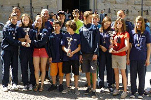 Vom 23.-25. Mai fand in San Giustino und Cittá di castello in Umbrien die Italienmeisterschaft der Schulen im Sportklettern statt. Dank der ausgezeichneten Leistungen von Anna Bacher, Anna Bernhart und Janet Heel erreichten die Gymnasien Meran bei der Gesamtwertung dieser Veranstaltung den 2. Platz und sicherte sich den Vizeitalienmeistertitel. Die Wertung setzt sich aus den drei verschiedenen Disziplinen: Bouldern (klettern in Absprunghöhe ohne Seil), Lead (klettern mit Seil) und Speed (Geschwindigkeitsklettern) zusammen. Die hervorragende Platzierung bei den Wettkämpfen war der Lohn für die kompakte und beständige Leistung der Mannschaft in allen Disziplinen.