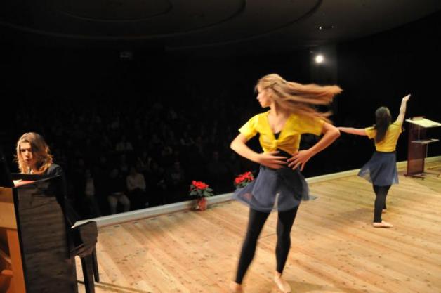 Zwei Ballerinas tanzten anmutig sowohl zu „Amelie“ als auch zu den rockigen Rhythmen einer neu gegründeten Band. Gleich mehrere special guests sorgten für Furore. Freunde und Geschwister aus dem Realgymnasium und der Mittelschule Passeier heizten die Stimmung auf ihren Drums ein.